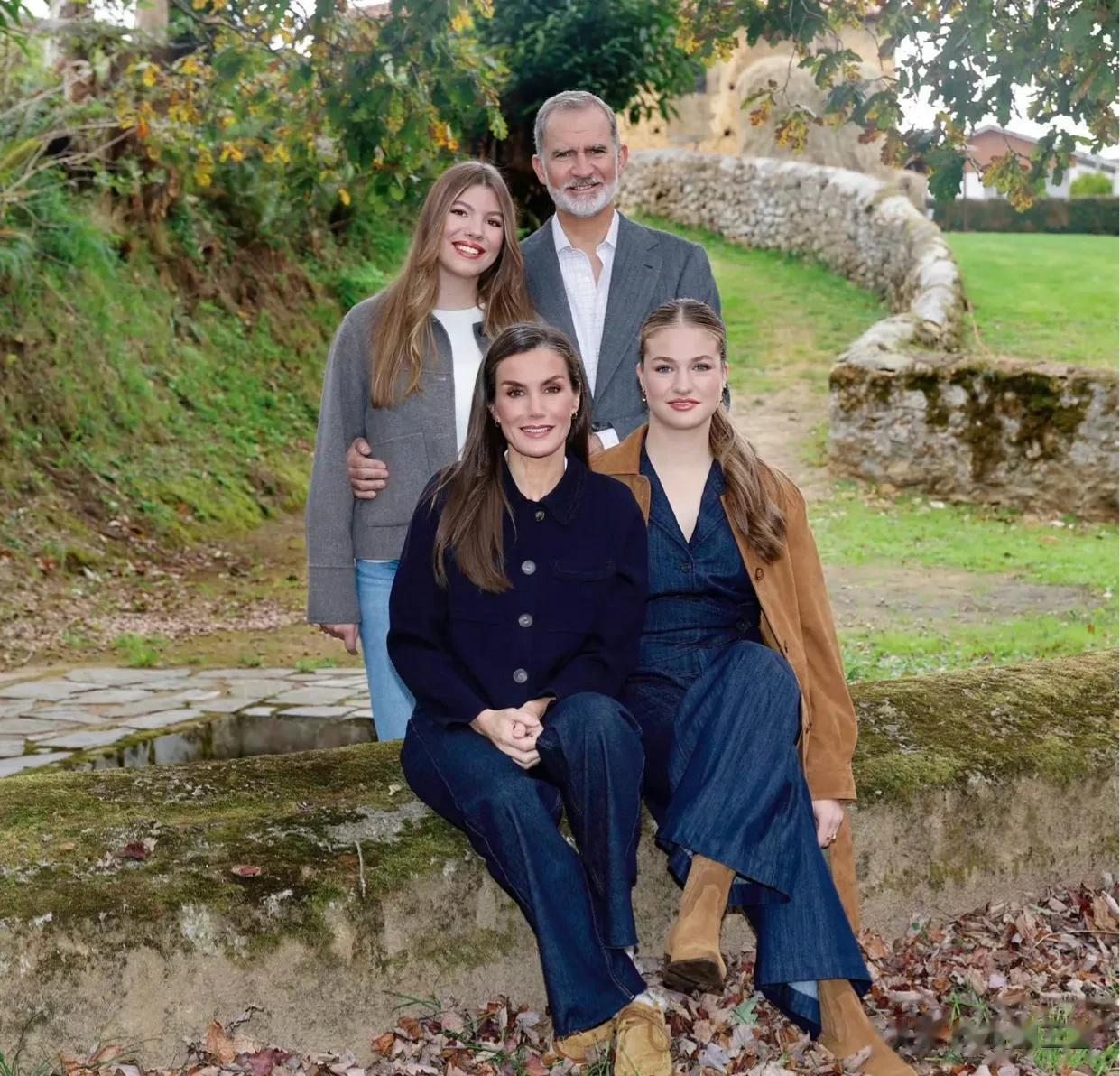 照片拍摄于今年10年,当时费利佩国王、莱蒂齐亚王后、索菲亚公主、莱昂诺尔公主走访阿斯图里亚斯模范小镇时,一家四口合影留念。