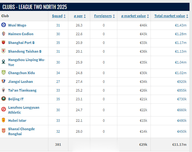 虎扑12月09日讯据转会市场管理员朱艺的消息,德国转会市场网(TransferMarkt.de)2025年终中乙球员身价例行更新今日已上线。