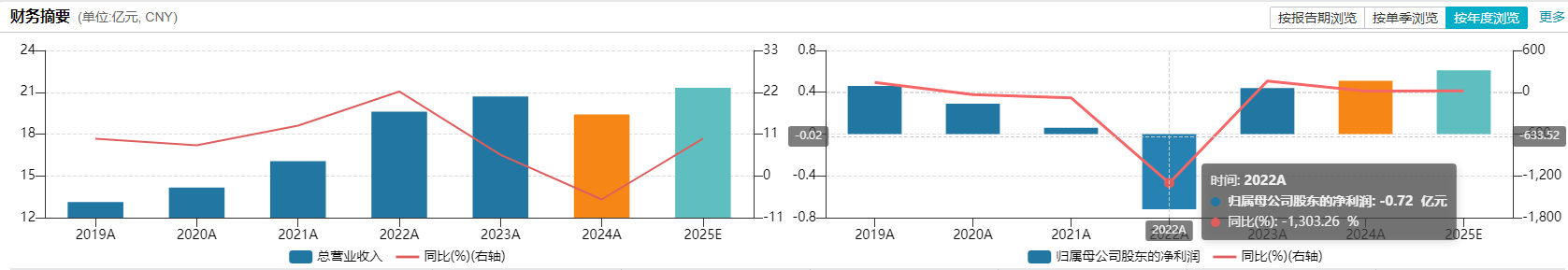 从实际业绩来看,2023年公司虽实现扭亏,营收创下20.7亿元的历史高点,归母净利润达4355.67万元,但增长势头未能延续。2024年营收同比下滑6.21%至19.41亿元;2025年前三季度业绩再度下滑,实现营业收入11.87亿元,同比下降11.47%,归母净利润2532.55万元,同比下降12.36%。