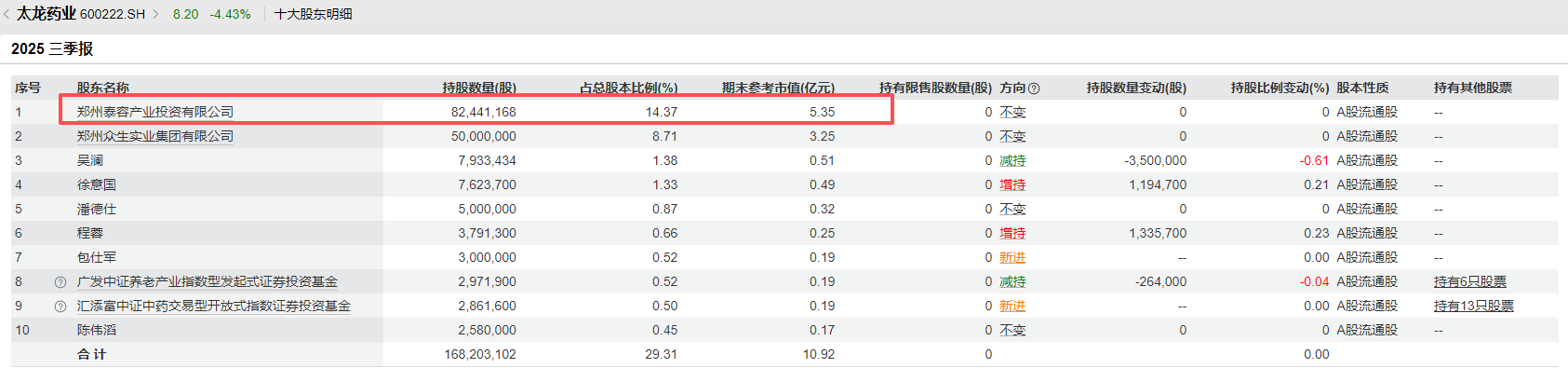 值得注意的是,郑州国资此次退出并非铩羽。2022年1月,泰容产投以9.7元/股的价格,受让了众生实业持有的8244万股太龙药业股份,耗资约8亿元。此次转让5010万股即可套现5.53亿元,整体浮盈6728.43万元。