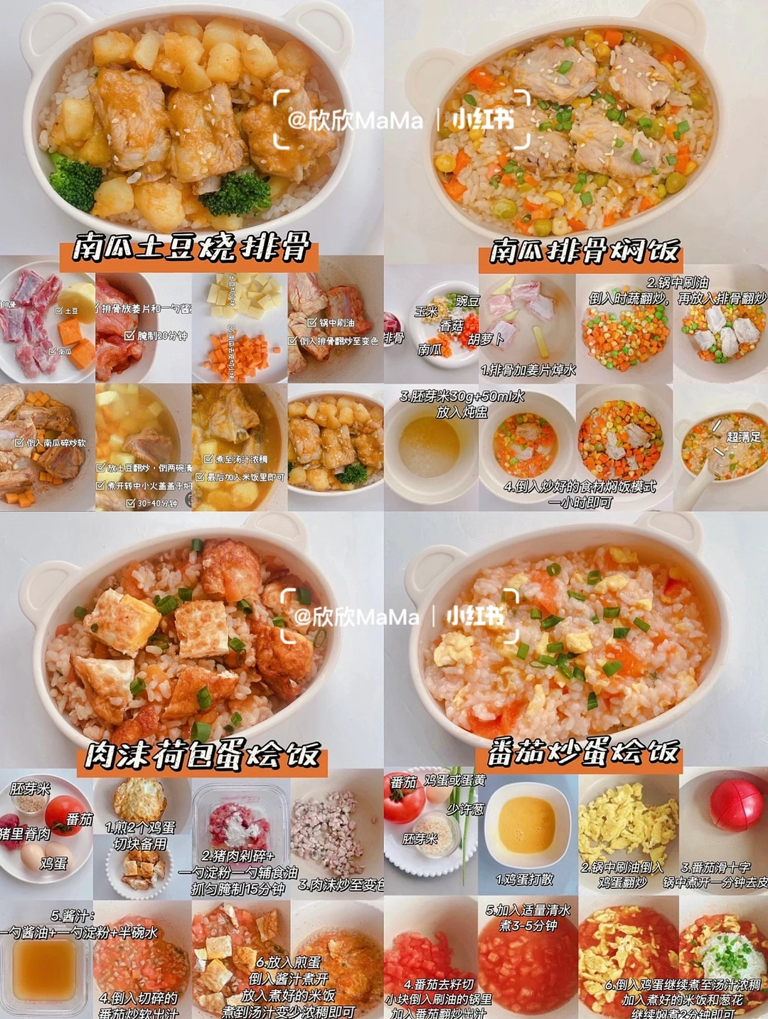今天整理了12款宝宝午晚餐辅食,不知道给宝宝做什么的看过来!有肉有菜,营养满满,好吃开胃,做法简单! 〰️〰️ 🌈不重样辅食菜单 ✅鱼香茄盒饭 ✅咕老肉饭 ✅番茄肉末豆腐饭 ✅菠菜炒猪肝饭 ✅葱油鸡腿饭 ✅宝宝猪排饭 ✅番茄炒蛋烩饭 ✅南瓜土豆烧排骨 ✅肉末荷包蛋烩饭 ✅茄子鳕鱼烩饭 ✅南瓜排骨焖饭 . 具体做法请看👀图3-图8 🌟所有食材需根据宝宝的咀嚼能力爱处理大小 🌟一岁以上可以放点酱油调味,一岁以下可以放点香菇粉、虾皮粉等