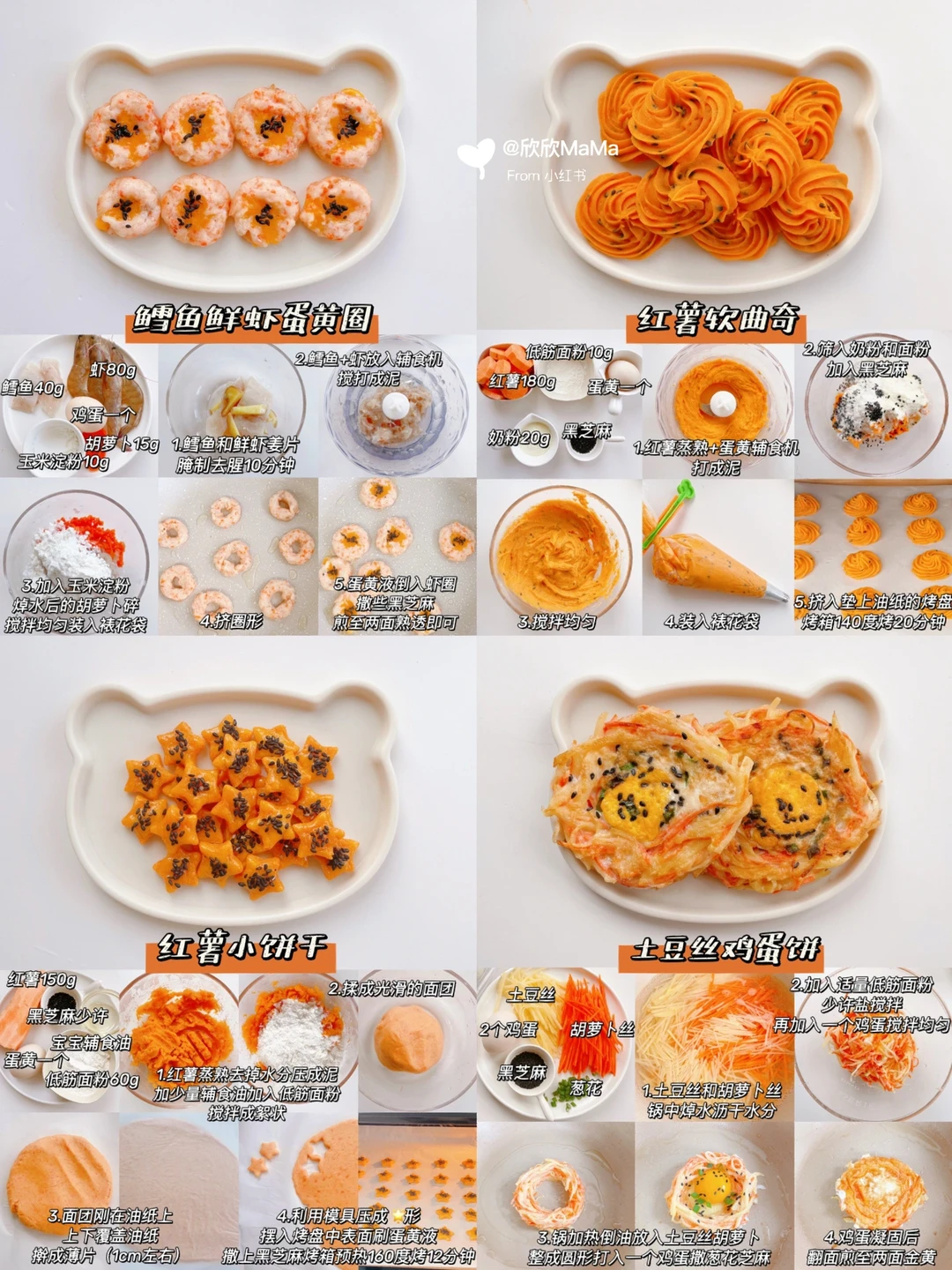 今天来分享一下平时给小欣欣做的24款简单易上手的手指食物~有辅食小饼,有虾有肉~营养满满~每款味道都很不错,麻麻们赶紧和我一起做起来吧,总有一款合适你😋