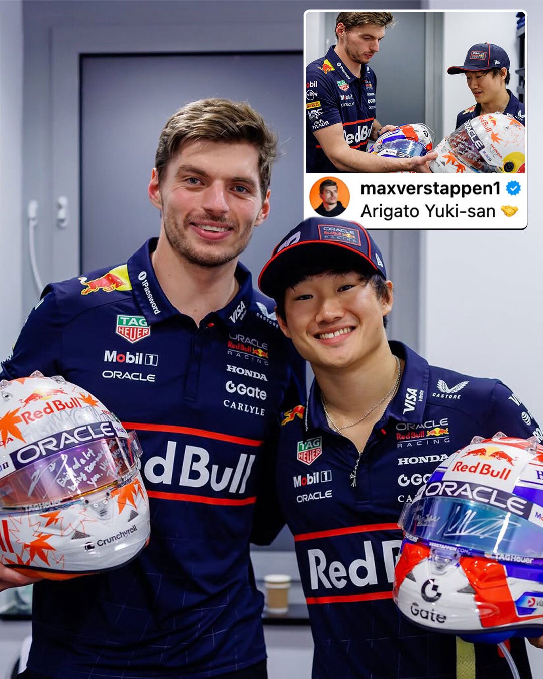 虎扑12月10日讯在收官战F1阿布扎比大奖赛,两位红牛车手马克斯-维斯塔潘和角田裕毅互相交换了头盔。这也是角田代表红牛参加的最后一场F1比赛。