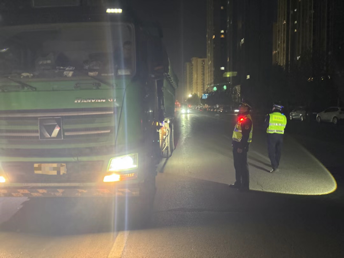 而当城市逐渐入睡,他们的守护仍未停歇。凌晨时分,渣土中队队长王矿军带领队员在平安大道开展巡查。夜色中,他们对建筑垃圾、渣土运输车辆进行严格检查,确保每辆车的密闭装置正常使用,落实GPS定位与编号准入管理,杜绝违规渣土车上路。