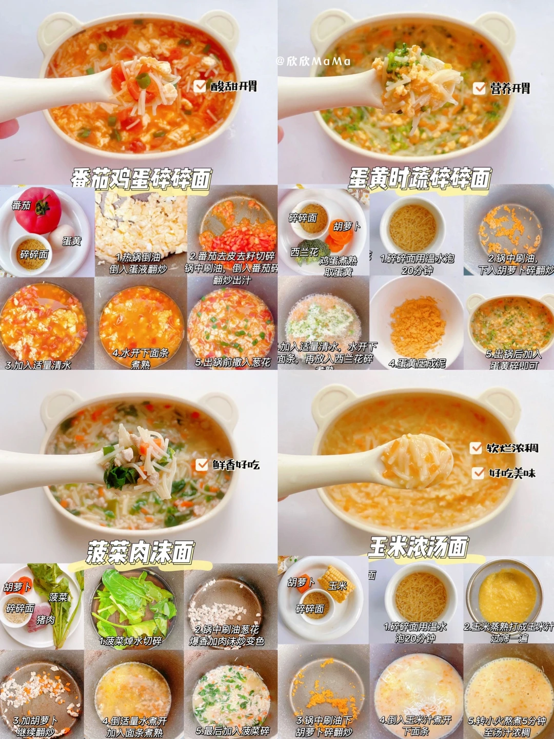 今天来分享24款宝宝营养碎碎面,不仅开胃好吃,做法也简单!有菜有肉,营养满满,轻轻松松搞定宝宝一餐!浓浓的香味,真的宝宝爱吃!