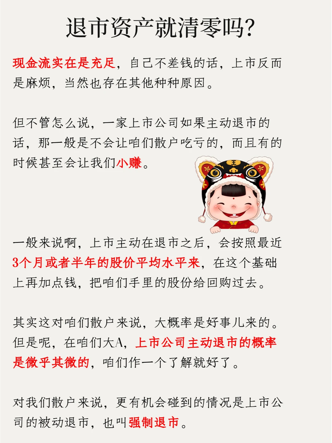 其实这对咱们散户来说,大概率是好事儿来的。但是呢,在咱们大A,上市公司主动退市的概率是微乎其微的,咱们作一个了解就好了。