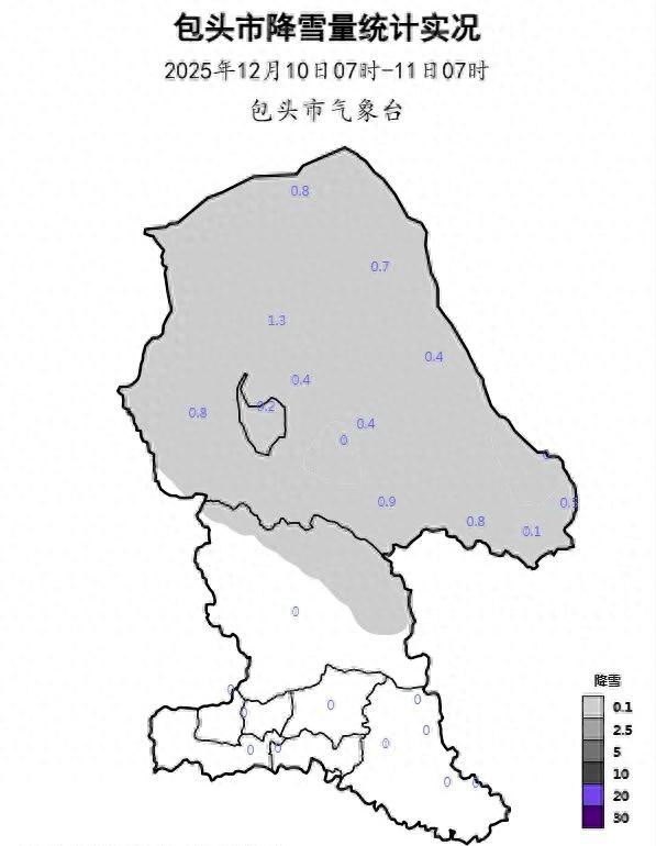 包头市气象局今日7时发布实况信息:12月10日7时至11日7时,我市固阳县北部、白云矿区、达茂旗出现降雪天气。最大降雪量出现在达茂旗红旗牧场为1.3毫米。