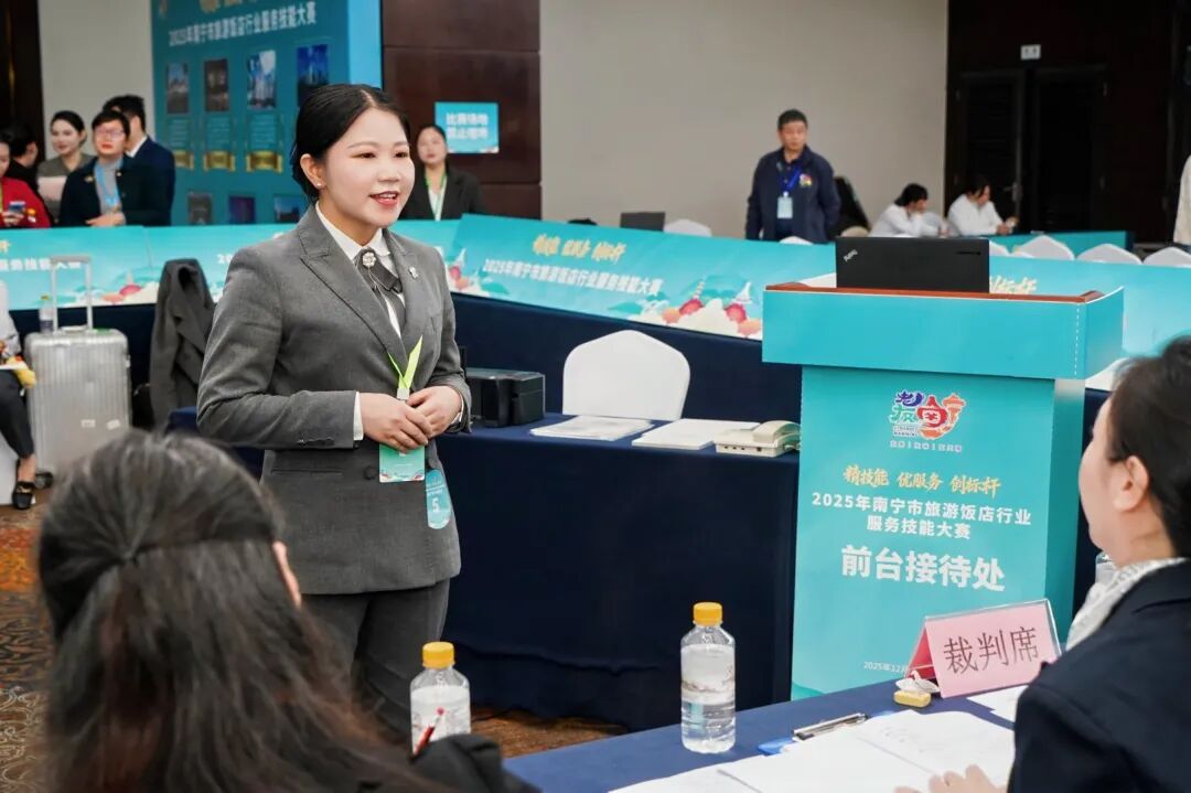 为深化南宁市旅游饭店行业岗位练兵成效,强化从业人员服务意识、质量意识与标准意识,全面提升行业服务专业化水平,12月10日,由南宁市文化广电和旅游局、南宁市人力资源和社会保障局、南宁市总工会、共青团南宁市委员会联合主办,南宁市旅游协会承办的2025年南宁市旅游饭店行业服务技能大赛在南宁成功举办。