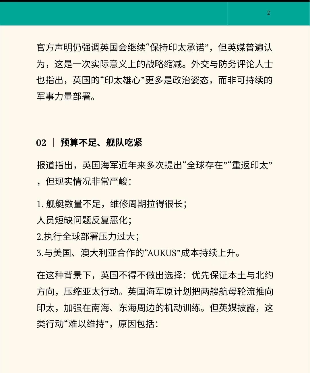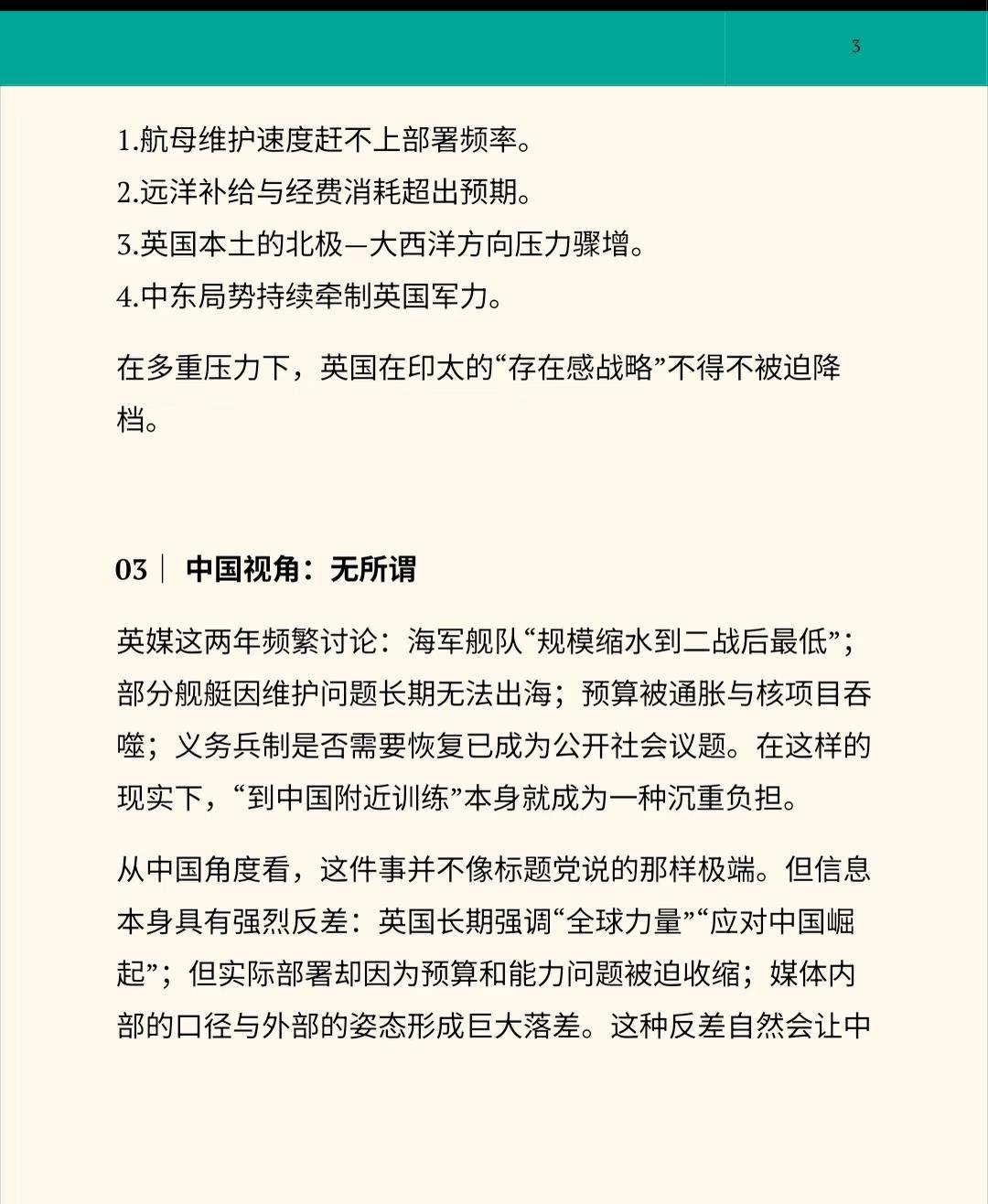 英军撤离亚太,官方称只是更灵活 英媒《每日电讯报》12月9日报道,英国皇家海军因预算与兵力压力,计划缩减在中国周边海域的训练活动。 英国军方回应,此举属于英国对全球部署的灵活调整,而非完全撤离。 热点 国际新闻 看国际形势知天下大事 军事 英国 海军 中国 历史与现在 全球化竞争