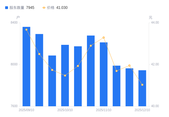 日期A股户数(户)流通A股户均持股数(股)户均持股市值(万元)2025-12-1079452778.2811.402025-11-2879632772.0011.632025-11-2079892762.9811.522025-11-1082122687.9511.642025-10-3182772666.8411.442025-10-2081742700.4411.322025-10-1081882695.8311.182025-09-3080862729.8311.392025-09-1982922704.1711.492025-09-1083602682.1811.71