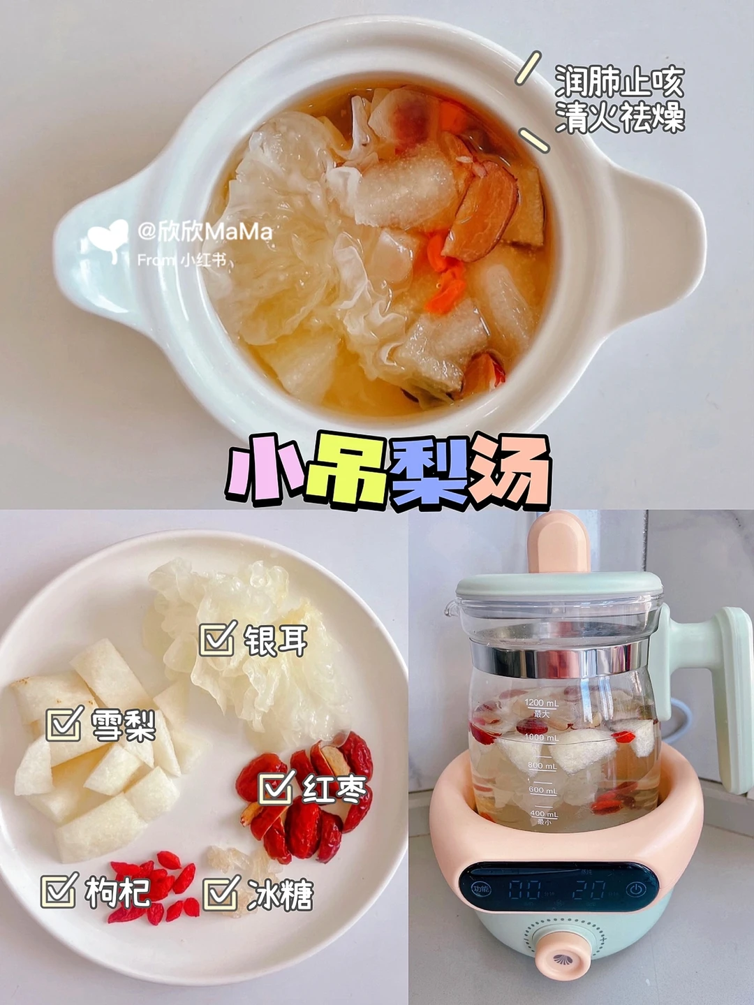 🛒食材:雪梨、银耳、红枣、冰糖、枸杞