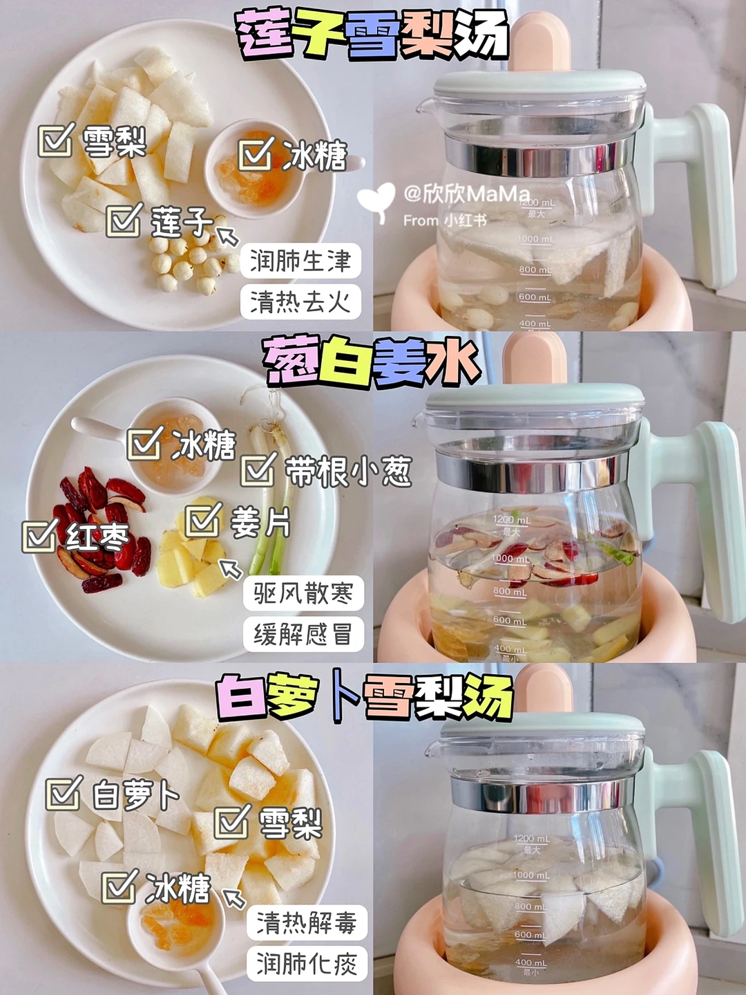🛒食材:白萝卜(需焯水)、雪梨、冰糖