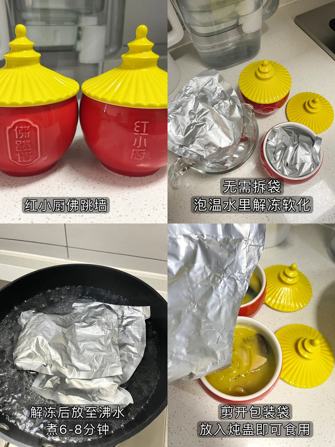 【红小厨佛跳墙】:温水解冻再沸水煮6-8分钟即可享受御膳级别的佛跳墙~