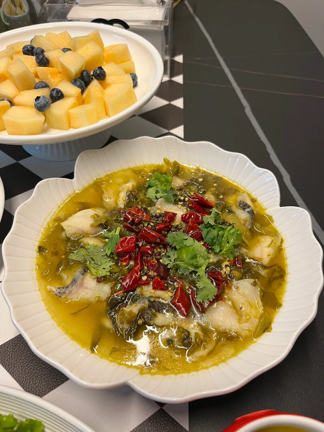 【酸菜鱼】:1️⃣免浆黑鱼片一盒,酸菜切碎备用,葱姜蒜备用。2️⃣锅内烧油,加入酸菜炒至变色,加开水煮开,加盐,白胡椒,鸡精调味。3️⃣继续烧开,放入鱼肉,煮至漂起捞出,放干辣椒,花椒,蒜蓉,芝麻,浇上热油即可,酸爽嫩滑,超级下饭!