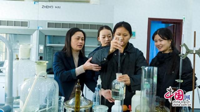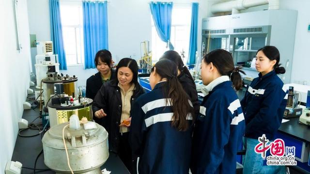 2025年12月10日,株洲检修车间化验工技师刘晶在教青工进行油脂化验。李红武摄