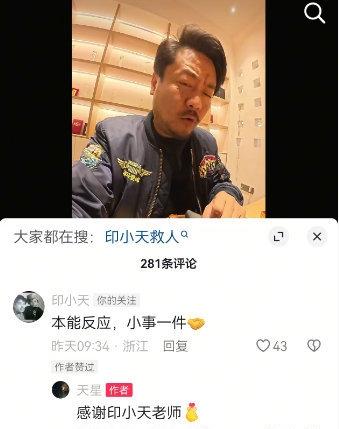 12月12日,一网友发视频感谢演员印小天救了他老婆一命,他和老婆去某景区游玩的时候,在栈道上他老婆不小心掉到水里去了,当时水很深也很凉,看到老婆掉下去的一瞬间,他都吓傻了,一动不敢动。 还是后面的印小天反应够快,在所有人还没反应过来的时候,他已经下水救人了,成功的把该网友老婆给救了上来。 现在该网友发视频感谢印小天对他老婆的救命之恩,称印小天是他们的救命恩人,言辞之间是满满的感激之情。 印小天看到视频以后,在评论区留言回复说救人是本能反应,小事一件。 不得不说印小天反应是真快,在所有人都还没反应过来时,已经下水救人了,而且救完人以后默默的走了,如果不是该网友发视频感谢他,大家都还不知道印小天的救人之举,他真的太低调了,做好事不留名。