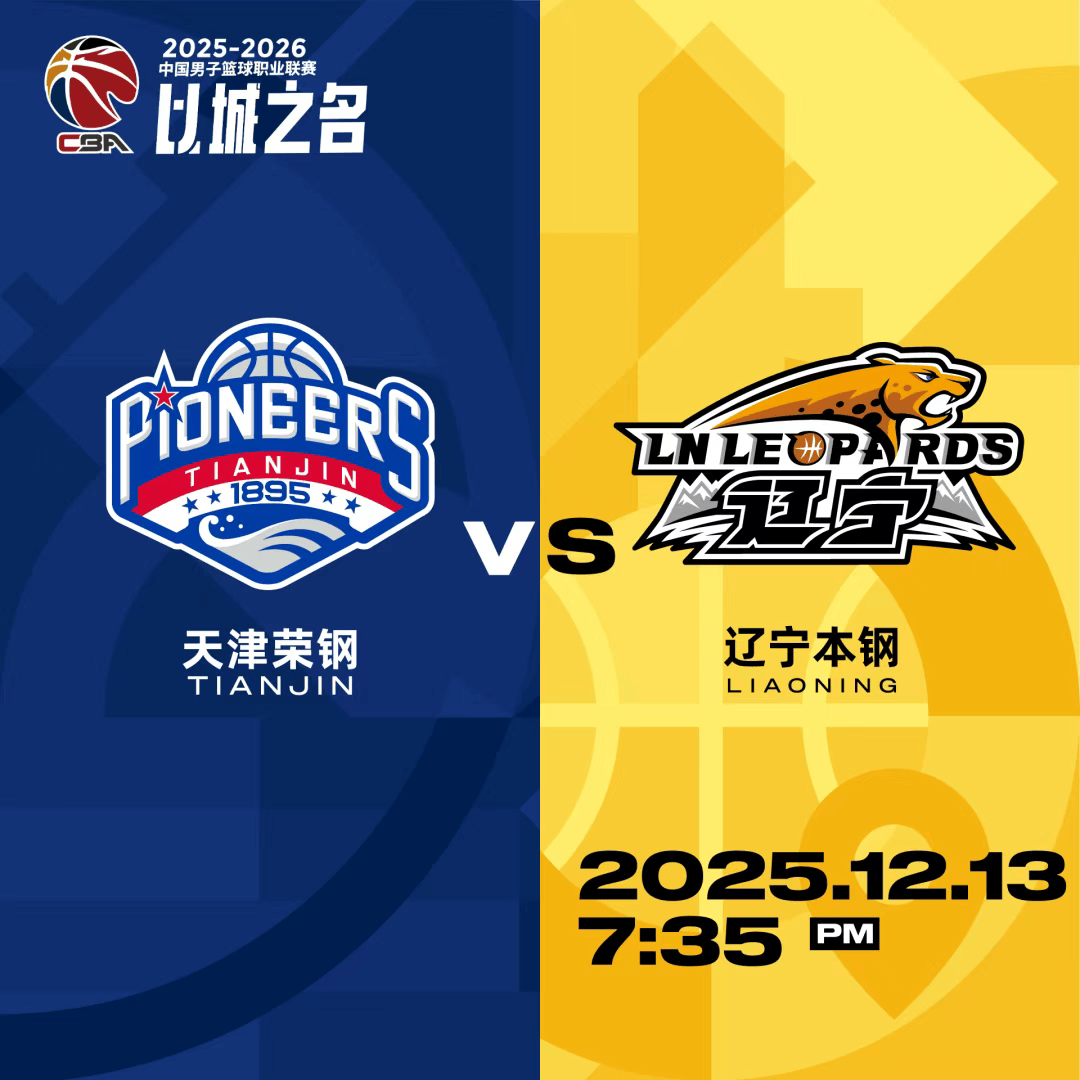 虎扑12月12日讯据天津男篮官方发文,12月13日,2025-2026赛季CBA常规赛第1轮,天津先行者将在主场迎战辽宁本钢。