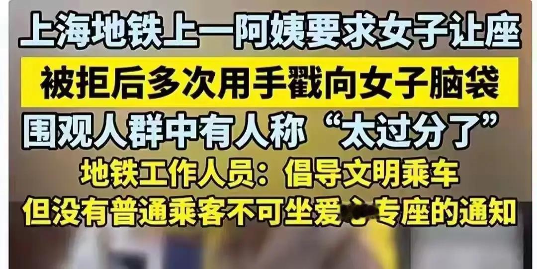 大妈暴戳女孩后续: 叫喧来打我,现场多人出手,女孩全程未让座。 这篇文章深刻反映了当代公共空间中关于“尊老爱幼”与“个人权益”之间的复杂矛盾。通过描述早高峰地铁中的一幕,揭示了“爱心座”实际使用中的尴尬与争议,以及年轻人与老年人在公共资源面前的不同心态和压力。 核心观点包括: “爱心座”的初衷与现实偏差:设置本意是帮助有需要的人,但在实际中变成了道德绑架和争夺的场所。优先座不应成为“特权座”,也不应成为冲突导火索。 年轻人与老年人的心态差异:年轻人工作压力大,身体疲惫,却因担心被指责而不敢轻易坐“爱心座”。一些身体健康的老人,则借此“占便宜”,引发矛盾。 尊重与理解的缺失:女孩在事件中选择了忍让,没有反抗,展现了对复杂环境的无奈和克制。反观一些老人和部分乘客的行为,反映出部分人对道德的滥用和对他人权益的忽视。 社会文明的真正内涵:文明不仅是口号,更需要每个人的实际行动。尊重他人、理性表达、界限意识,是构建和谐公共空间的关键。 这起事件提醒我们:公共场所的文明行为,不应建立在道德绑架和算计上,而应是相互理解、尊重和体谅的体现。每个人都应意识到,善意和理性才是解决矛盾的根本之道,而非盲目的指责或无端的争夺。只有这样,社会的文明才能真正落到实处。