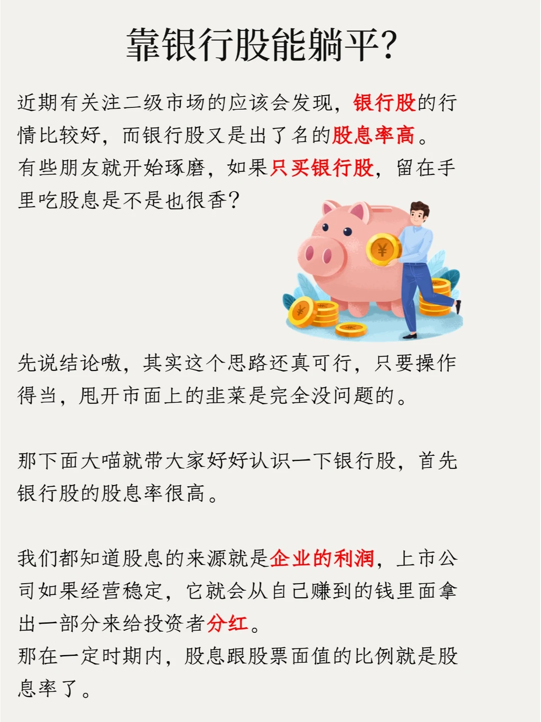 近期有关注二级市场的应该会发现,银行股的行情比较好,而银行股又是出了名的股息率高。有些朋友就开始琢磨,如果只买银行股,留在手里吃股息是不是也很香?