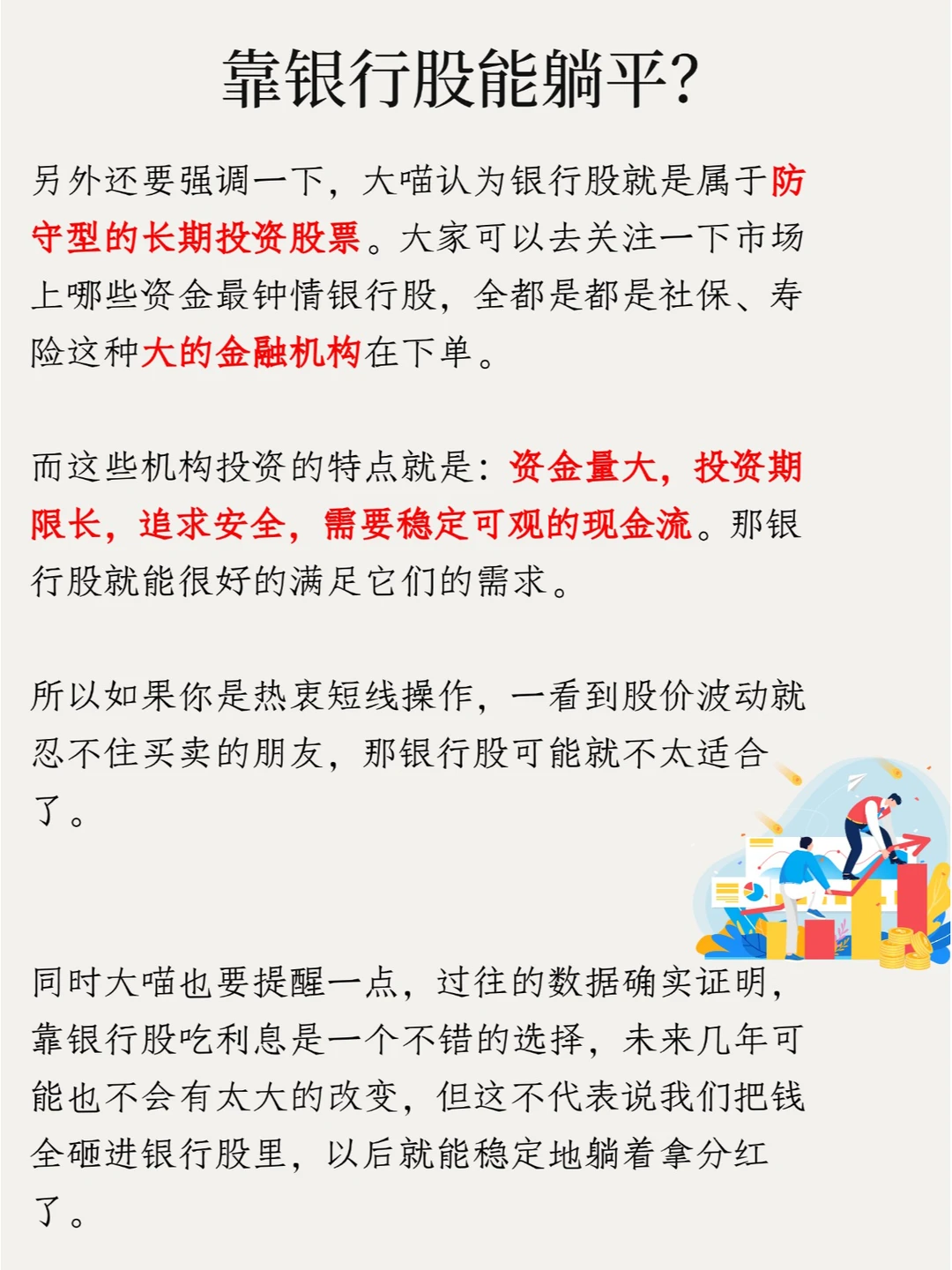另外还要强调一下,大喵认为银行股就是属于防守型的长期投资股票。大家可以去关注一下市场上哪些资金最钟情银行股,全都是都是社保、寿险这种大的金融机构在下单。