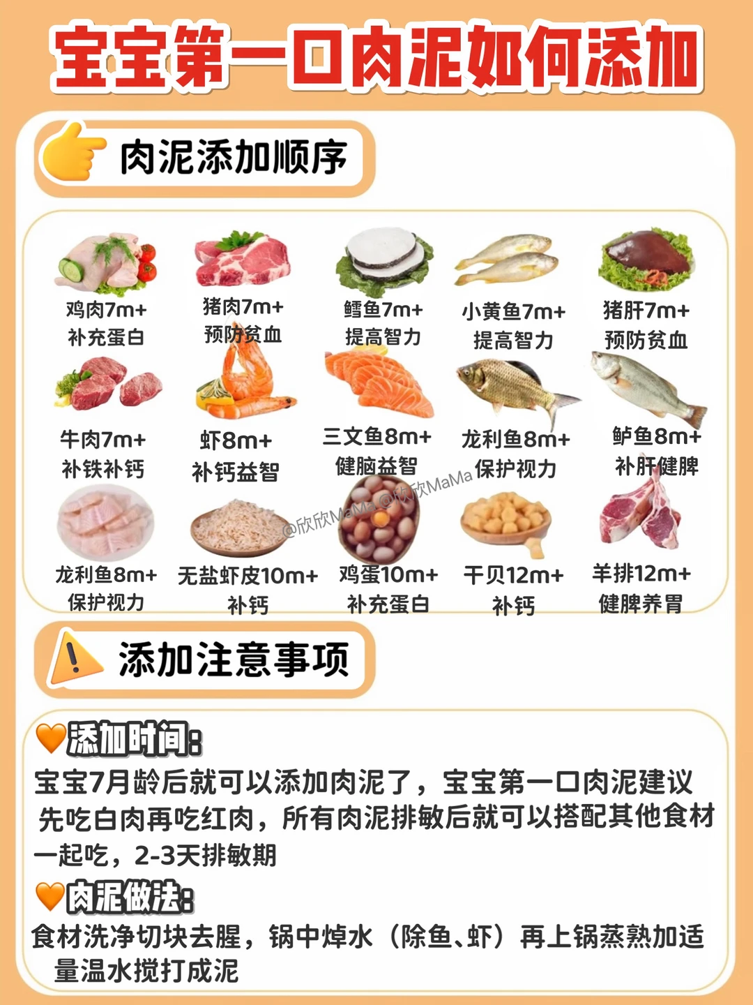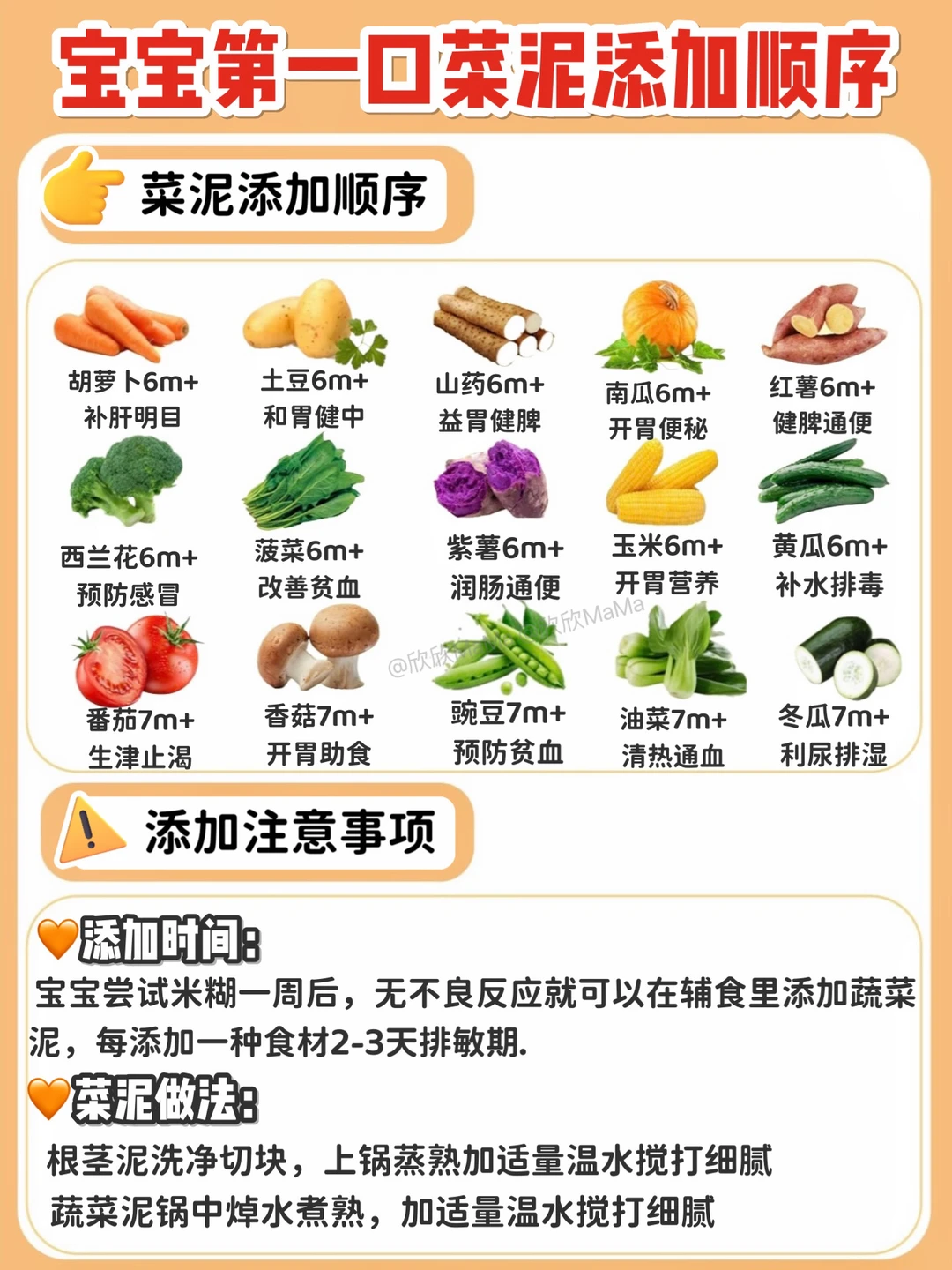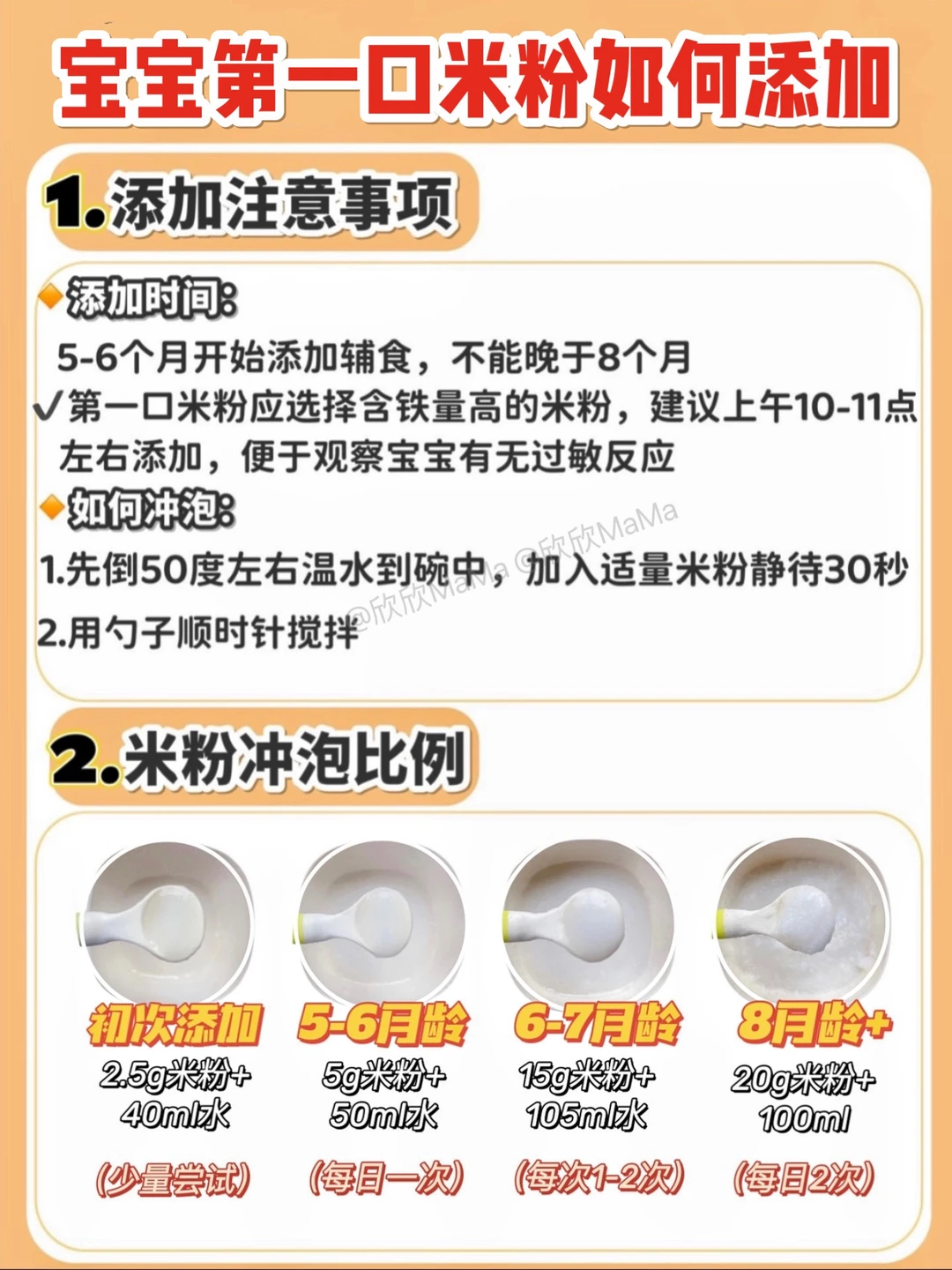 ⚠️ 每添加一种食材3天排敏期,如辅食泥第一天1-2勺,第2天2-3勺逐渐增加拌入米粉里