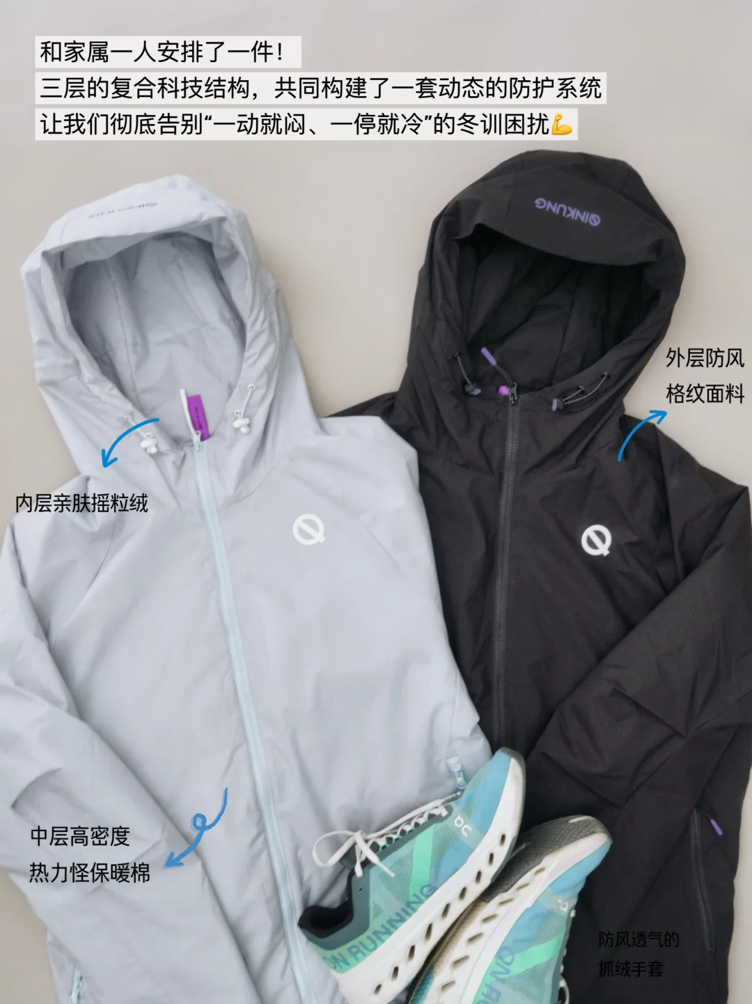 爱是持之以恒,运动更是🧡 当冬天来临,寒风凛冽不是劝退的理由,而是我们升级装备、向内确认的坚定信号💪 作为两个常年坚持运动的普通人,分享一份亲测实用的冬训装备清单🧾 希望能助力更多人在冬日里畅快运动👉 [打卡R]运动外套 运动人一定要知道,在冬天,棉服保暖才是yyds! 这也是我们想在低温下坚持户外运动,最关键的装备🏃🚴 这个冬天们穿得最勤的,就是这件「轻功热力怪棉服」。官方虽然是定位跑步棉服,但是我感觉更像是一位适配冬季多种户外运动场景的“六边形战士”——无论是跑步,还是骑行、匹克球,都能从容应对👍 ➤ 动态保暖,汗湿也不冷 内里填充的热力怪棉,薄款据官方显示克罗值能达到1.67,穿上就感觉暖暖的,而且很惊喜的是它真的好轻,一点没有束缚。 即便是跑步后大汗淋漓,依然能锁住体感温度,真正做到湿后不冷、持续保暖🔥 最外层的面料不仅防风防雨,而且布满透气格纹,静止时贴合锁温,运动时开合排气,能够与后背隐藏的透气活页,形成一套“会呼吸”的保暖系统,始终保持运动过程中的干爽。 ➤ 一件过冬,应对多变冬季 以我们所在的包邮区为例,冬季的气温区间大约在0°C~15°C。面对进一步降温,还可以根据天气和体感,进行灵活叠穿——内搭速干层强化排汗、外罩抓绒马甲加强保暖…… 主打的就是一个“一件过冬”,驾驭整个冬训的温差变化,real实用👏 ➤ 轻量无束缚,防护也省心 男款M码仅重约377g,轻盈如一件卫衣,让轻装上阵的冬训成为可能👌 简洁宽松的剪裁设计,不仅运动时舒适💯,静态下同样利落有型,作为晨跑后的通勤穿搭也不违和。 [打卡R]其他保暖配件 配件同样至关重要,它们是防止热量从“突破口”流失的关键。 -运动冷帽:一顶轻薄的冷帽能极大减少热量流失。 -运动围脖:功能万能的单品,防风保暖效果显著,也可以可以拉起来护住口鼻温暖吸入的空气🌬 -运动手套:建议选择指尖有触屏功能的款式,方便操作手机或码表。 最后,冬季训练,不仅是对意志的磨砺,也是一场关于智慧的装备竞赛。 如果你也在寻找一件专业的冬季运动外套,那么轻功热力怪可以说是在保暖、透气与轻量之间都做到了优秀的平衡,是我们心目中最懂跑步的棉服!