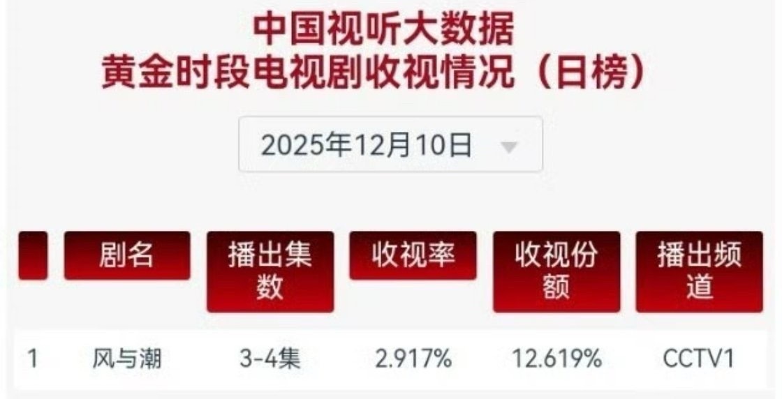 任嘉伦扛剧能力真的厉害👍🏻12.09《风与潮》1-2集:黄金档收视率第一🏆12.10《风与潮》3-4集:黄金档收视率第一🏆12.11《风与潮》5-6集:黄金档收视率第一🏆