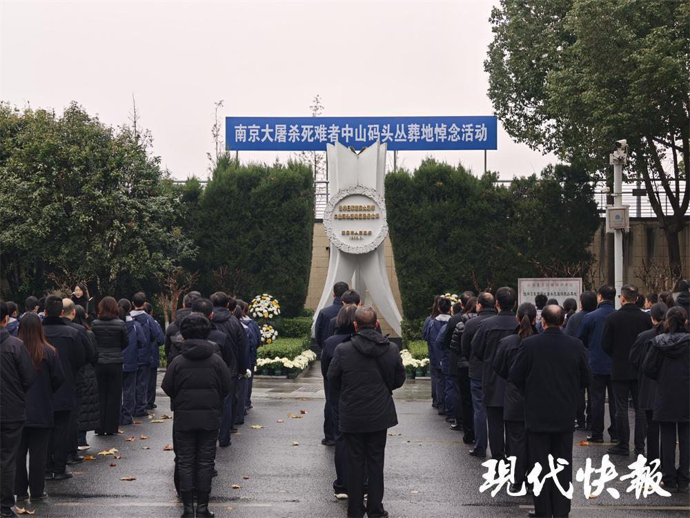 不远处的中山码头,江风猎猎。中山码头侵华日军南京大屠杀死难同胞丛葬地就在中山轮渡码头与1号码头沿江路边。88年前,当时避居国际安全区的青壮难民在这里惨遭杀害,共达万人以上。其中,1937年12月16日傍晚,侵华日军从避居在原华侨招待所的难民中捕获所谓有“当兵”嫌疑者5000余人,押解在这里,用机枪集体射杀后弃尸江中。12月18日,侵华日军又从避居在大方巷的难民中搜捕青年4000余名押解到这里,用机枪射杀。