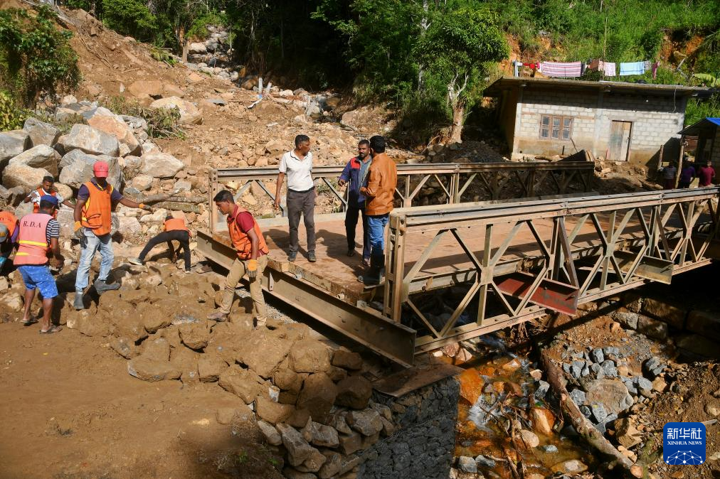 12月13日,在斯里兰卡巴杜勒地区,应急人员抢修受损桥梁。