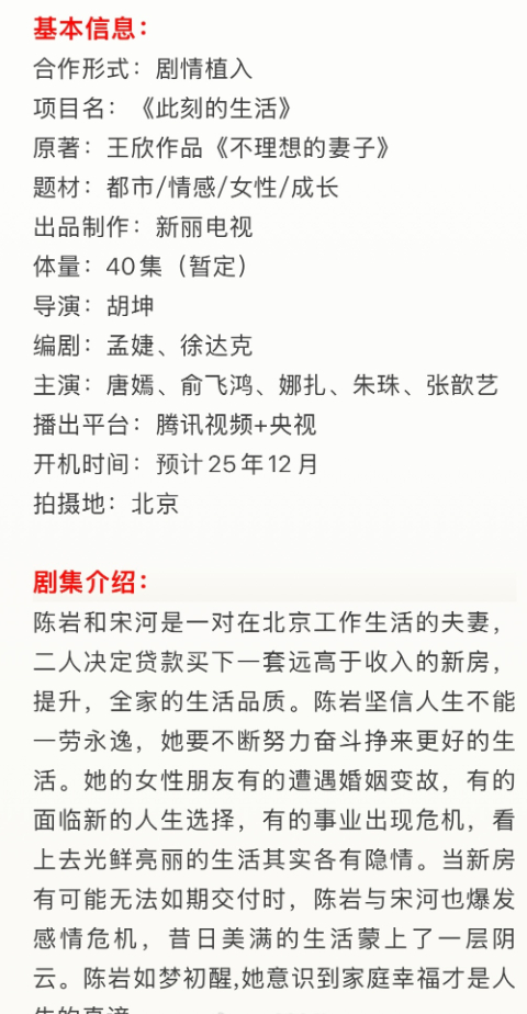 参与《此刻的生活》的唐嫣,让节目招商工作备受关注,生活类主题搭配艺人影响力,展现合作价值。唐嫣此刻的生活招商此刻的生活招商