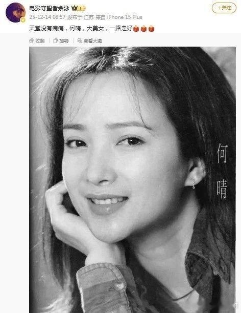 演员何晴去世 唯一演遍四大名著的女演员何晴走了。这不是一个演员的落幕,是一个时代的绝笔。她的脸,就是一部微缩的中国电视史诗。从《西游记》的仙气,到《红楼梦》的幽梦,穿进《三国》的烽烟,再踏入《水浒》的江湖。四大名著改编,四座文化高峰,而她正当年,古典的气质像是从书里走出来的。这不是选明星,是为角色“招魂”。她一个人,串起了整个八十年代到九十年代初,中国电视人最热血、最虔诚的时代。她的唯一,是再也无法复制的奇迹。 这不是运气,是严丝合缝的时代齿轮,恰好咬合了她艺术生命的黄金刻度。时移世易,创作的环境、节奏与逻辑已发生根本性变迁。工业化、流量化的快节奏生产,资本对效率的极致追求,使得如此漫长、纯粹的创作变得奢侈。她的离去使得唯一性不复再现。而我们也在慢慢老去。何晴,一路走好!