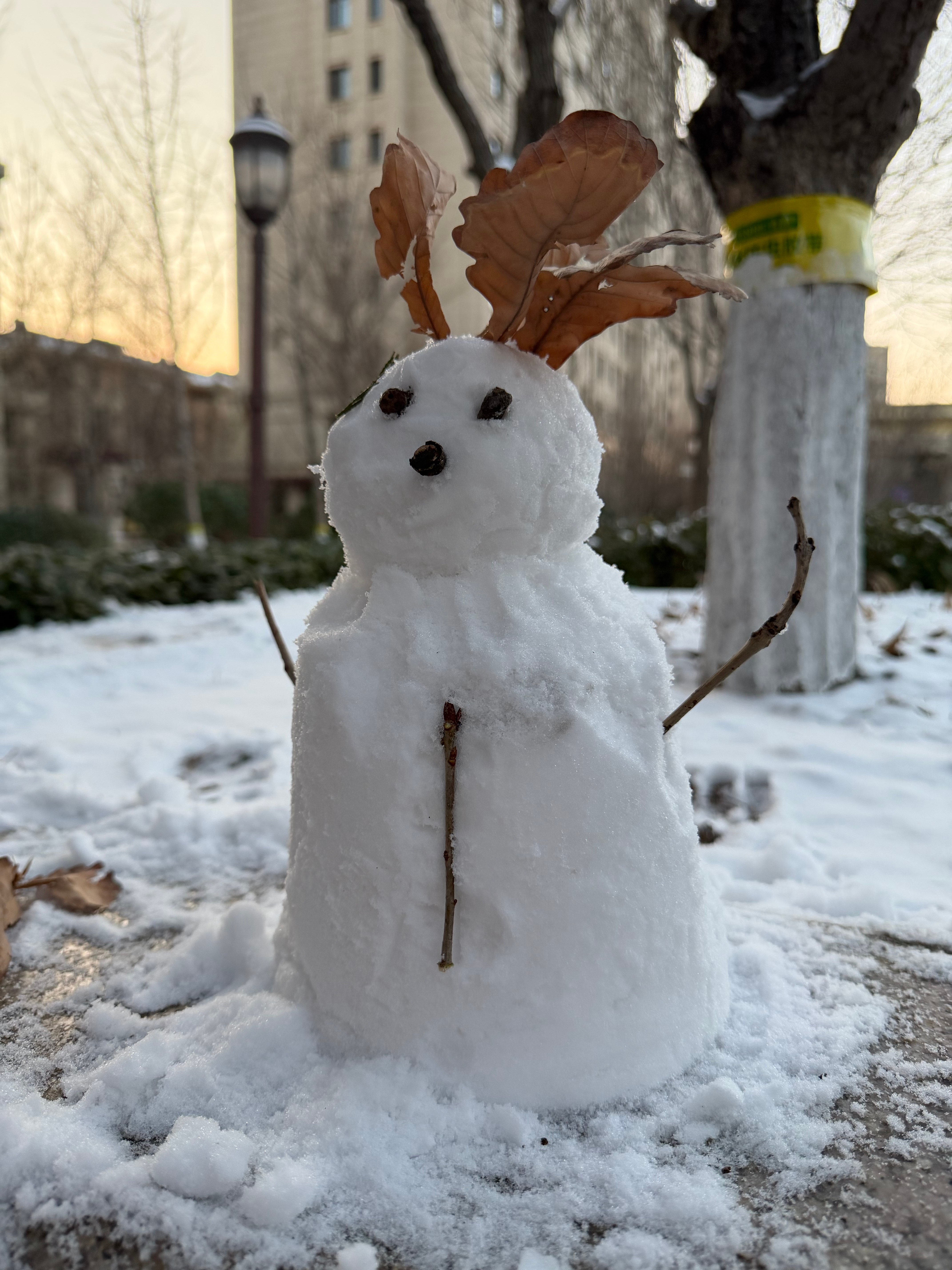 北京初雪❄️出差赶回来,怎么也得玩一下,堆个有发型的雪人⛄️刘亦菲晒初雪哈哈合照