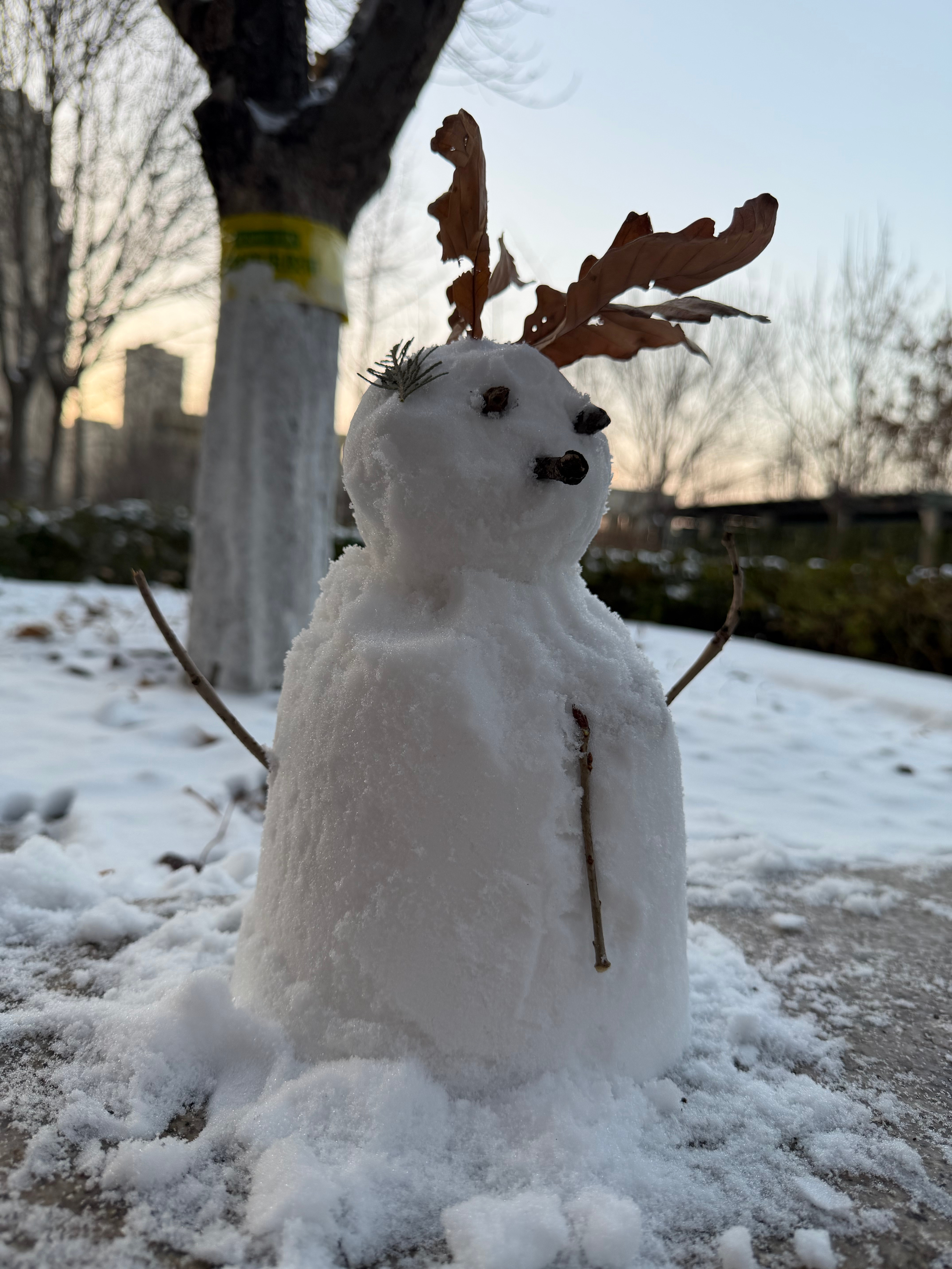 北京初雪❄️出差赶回来,怎么也得玩一下,堆个有发型的雪人⛄️刘亦菲晒初雪哈哈合照北京初雪