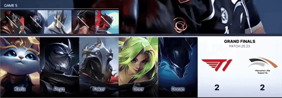 T1选用:Doran慎、Oner梦魇、Faker维克托、Peyz泽丽、Keria悠米