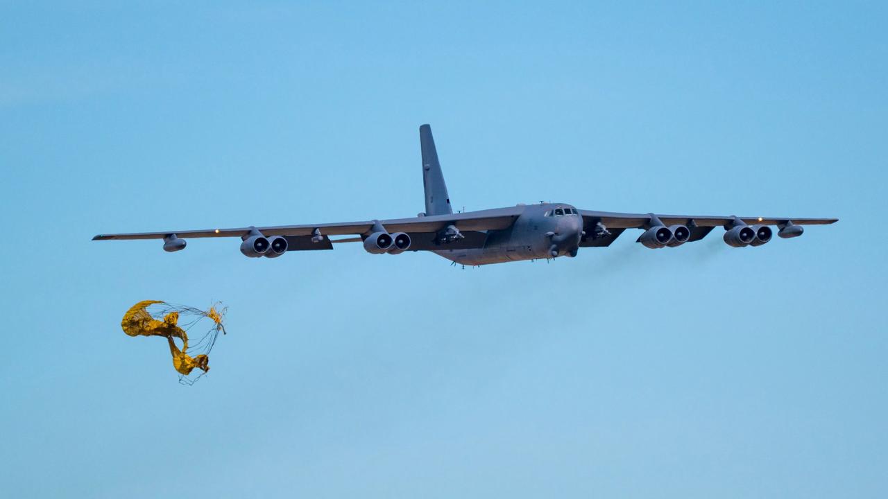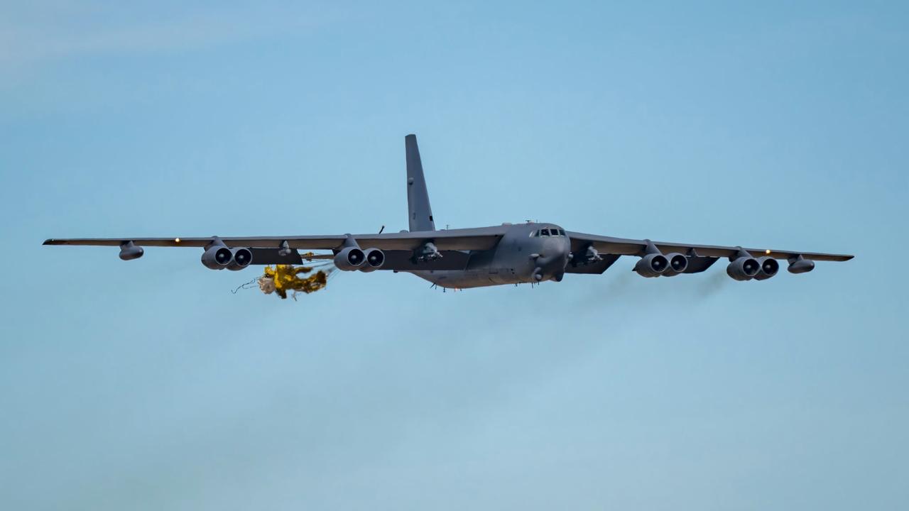 12月12号,美国空军1架B-52H战略轰炸机在巴克斯代尔空军基地准备降落时,减速伞意外在空中打开!