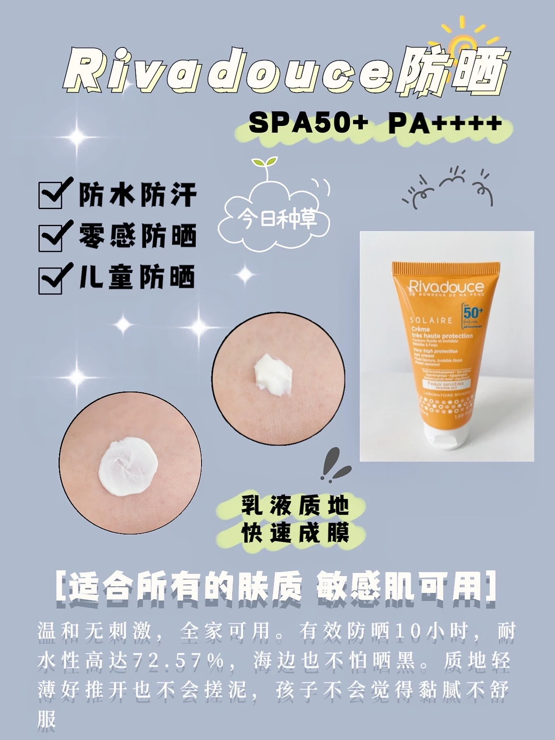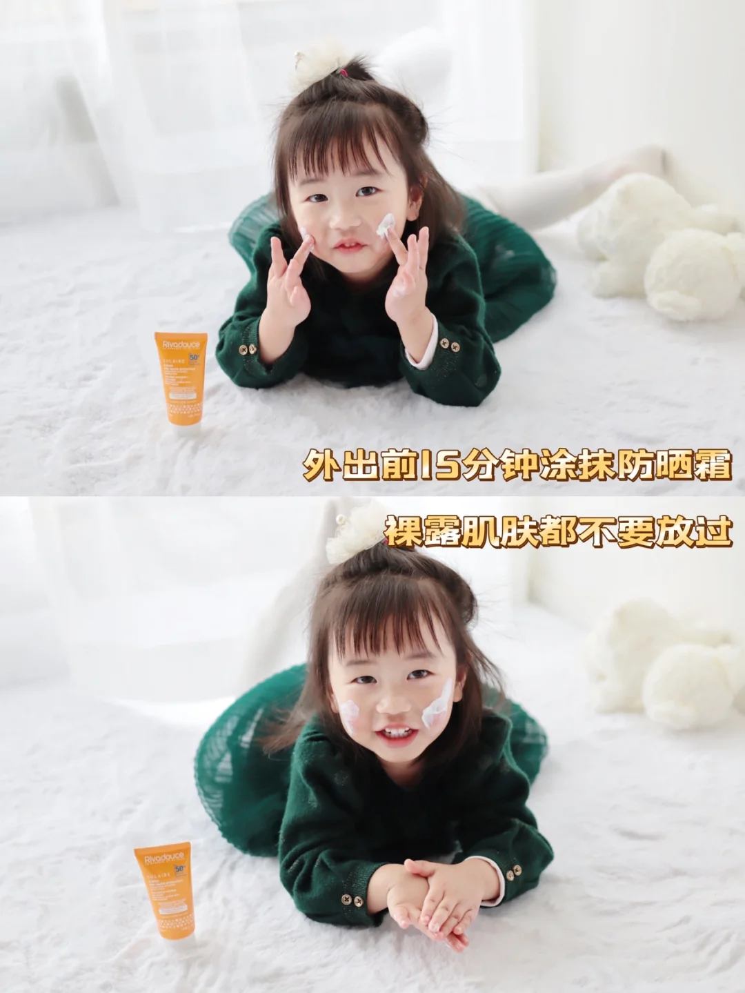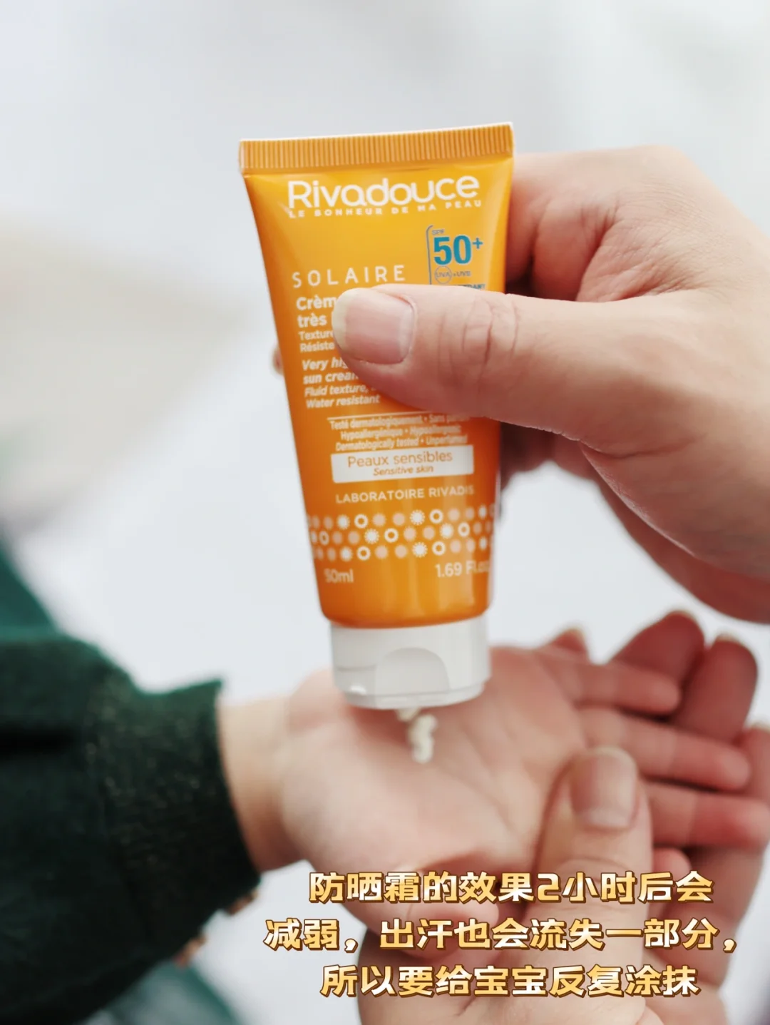 很多麻麻👩都是夏天才给宝宝擦防晒霜,这样是远远不够的‼️今天给大家分享如何正确给宝宝防晒👇🏻 . ❤️宝宝如何防晒? ✔️上午10点至下午4点是紫外线最强的时间段,尽量避免这时候带孩子直接暴露在☀️阳光下 ✔️做好物理防晒,给宝宝穿长袖长裤或者防晒衣 . ❤️如何给宝宝涂防晒霜? ✔️涂足够量:家长担心防晒霜给孩子皮肤带来负担只涂1⃣️点点,但是足够用量的防晒霜才能起到好的防晒效果 ✔️涂的位置:家长应该将防晒霜挤在手上,再均匀覆盖孩子所有裸露的肌肤,避开👁️周围 ✔️提前涂抹:至少提前15分钟涂抹才能被肌肤吸收 ✔️每天擦:一年4⃣️季孩子在户外玩耍时都要擦防晒霜,不只是晴天🈶️紫外线 . ❤️如何选防晒霜? ✔️6⃣️个月以上的宝宝就可以用物理防晒霜了 ✔️3⃣️岁以上宝宝可以选质量🉑️靠的物理➕化学防晒配方的防晒霜 ✔️不要选防晒喷雾,因为孩子乱动,可能会吸进去。而且喷雾用量难控制,容易漏掉某些地方 ✔️选择可以抵御UVB➕UVA的防晒霜 . 我给Cyndi用的是Rivace法朵适小橙管防晒霜SPF50➕,选择它是因为它们是在法国🇫🇷51年的老牌子,深耕于医疗领域,产品质量靠谱,低敏🈚️刺激,给👶用比较放心👌🏻而且Cyndi跟我一样容易晒伤,所以必须选高度防晒系数,UVA➕UVB强力防护,即使是夏天也不担心晒黑宝宝啦‼️ . 而且它的耐水性高达72.57%,即使夏天流汗💦也不担心大大影响防晒效果啦‼️之前给Cyndi用的防晒霜黏腻又不好推开,她都不愿意用,这款清爽不油腻,她也就乐意擦了👌🏻 . ❤️晒后如何修复? ✔️给孩子喝足够的水来补充皮肤丢失的水分 ✔️用凉水湿敷为皮肤降温来减轻皮肤的灼热,大一点的宝宝可以敷儿童面膜 ✔️如果晒伤可以按👩‍⚕️的嘱咐适当使用药💊物,不要自行涂抹药物 ✔️让孩子远离阳光☀️,直到晒伤完全痊愈 . 天气渐渐暖和了,防晒1⃣️定要到位噢,这样就不担心宝宝晒黑啦😄感谢法朵适品牌赞助使用❤️