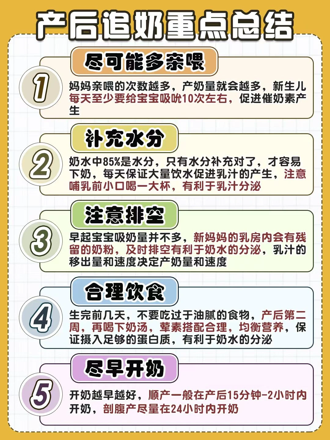 妈妈亲喂的次数越多,产奶量就会越多,新生儿每天至少要给👶吸吮10次左右,促进催奶素产生