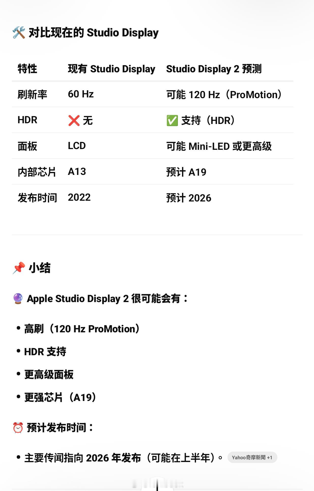 2026年我最期待的数码产品:苹果Studio Display 2,按照目前预测大概率会有ProMotion和HDR,价格也不会像Pro Display XDR那么贵,终于,终于可以换新显示器了你们2026年最期待什么?