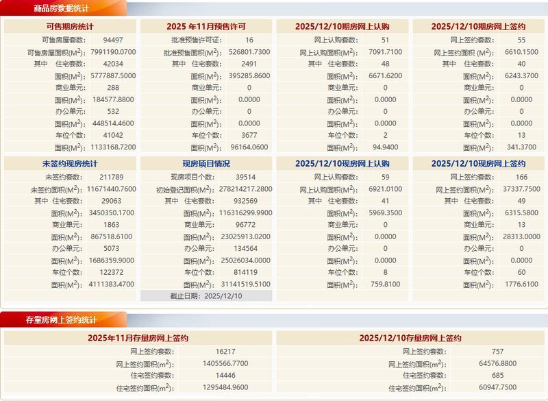 根据北京市住房和城乡建设委员会数据:12月10日,北京新房住宅网签89套,网签面积约12558.95㎡;二手房住宅网签685套,网签面积约60947.75㎡。