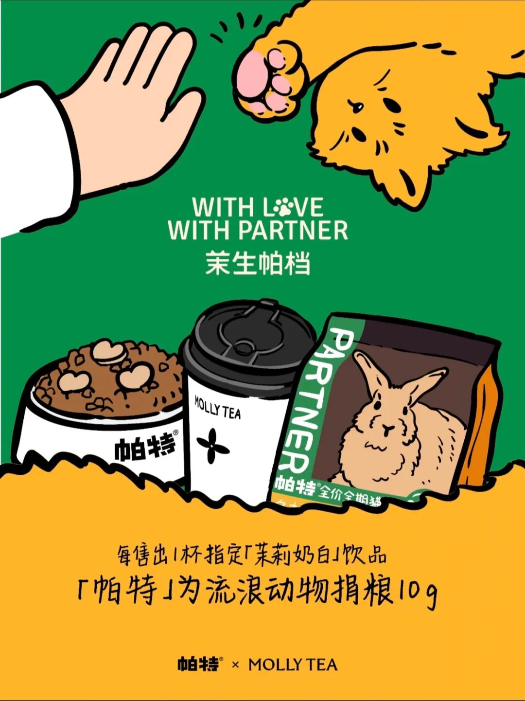 帕特在与其他品牌的联名公益活动上,也常常采用这种模式,根据指定产品的售出量来决定最终帕特给流浪动物捐赠多少粮,合作活动包括: