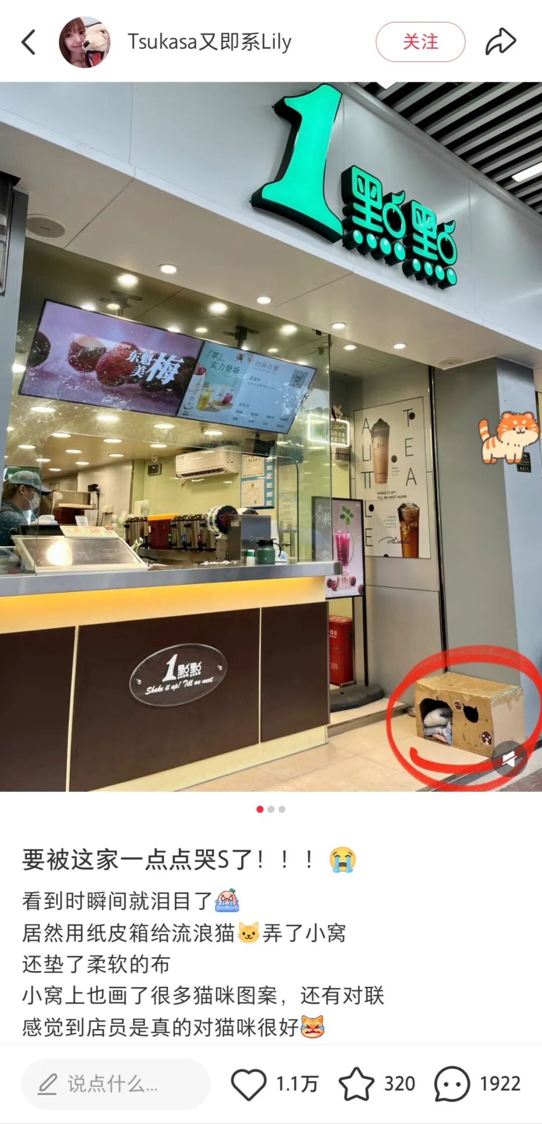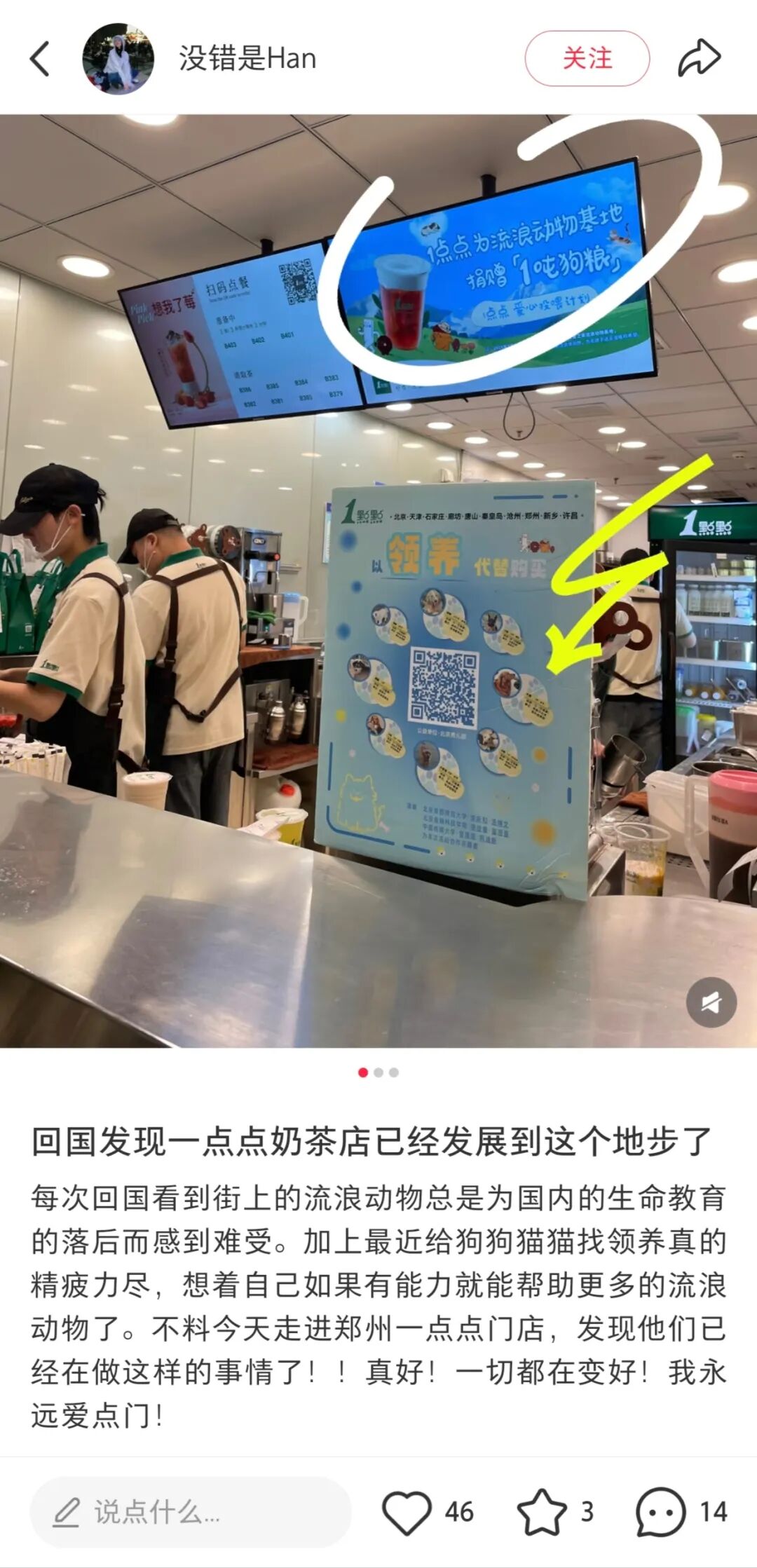 除上述之外,它星球还了解到一家以“充满诚意”而在救助群体中声名大噪的茶饮品牌——一点点。