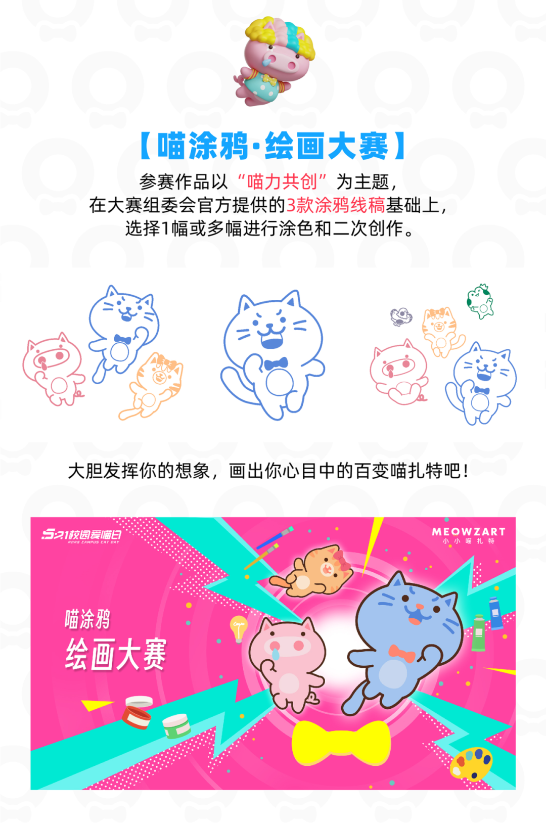 基于这一观察,品牌为这些爱猫社团的同学们量身打造了一场名为“5.21校园爱喵日”的活动。这场活动从每年5月持续到8月,通过如摄影、绘画、街舞、音乐等多种多样的贴合年轻人才华的比赛形式,让公益以更接地气的方式走进校园。