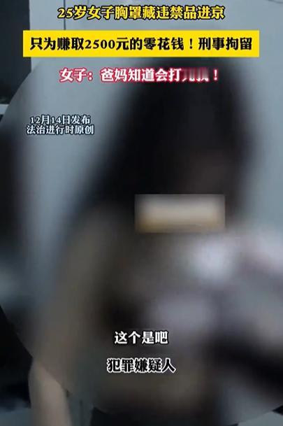 早知如此何必当初!北京一25岁女子进京时,被检测出胸部不对劲!一番检查后,果然在女子胸罩里发现猫腻,原来,女子为赚2500零花钱,竟然铤而走险,在自己胸罩里藏违禁品进京,她将面临刑事拘留,现场女子一个劲求饶:爸妈知道会打死我的! 视频里,女子显得很慌张,从她胸罩里掏出5包白色袋子,里面有粉末状物品,一看就不是普通东西。她也主动交代,自己其实很老实的,家里还有小孩!想要求饶。 民警询问:你干什么工作的?经济来源呢? 女子回答:在家带小孩,前夫给生活费。 可法律面前没有 “不知情” 的说法,她的求饶根本没用,民警依法将她带走。 视频传到网上后,网友们炸开了锅,两条神评戳中人心: 当妈的人了还这么糊涂,为点小钱碰红线,自己进去了孩子咋办?“不知情” 从来不是违法的借口! 这姑娘的悲剧,完全是自己糊涂加侥幸心理酿成的。《刑法》第 347 条,只要运输、携带毒品等违禁品,无论数量多少,都构成刑事犯罪,哪怕是几克,也可能处三年以下有期徒刑、拘役或者管制,情节严重的还会判更重的刑。 她以为 “藏得隐蔽”“不知道是啥” 就能免责,却忘了法律明确规定,“明知或应知” 是违禁品仍运输,就构成犯罪,而 “高额报酬 + 隐蔽携带”,本身就是 “应知” 的铁证。 这姑娘的处境确实让人同情,带娃没收入、经济拮据,但再难也不能走歪路。 说到底,“君子爱财,取之有道”,赚钱再急也不能丢了底线。这姑娘用 2500 块换来了牢狱之灾,不仅自己要受罚,孩子的成长也会受影响,这样的代价太沉重。 希望她的经历能给所有人敲响警钟:天上不会掉馅饼,任何轻松赚大钱的说法背后,大概率藏着违法陷阱;无论生活多困难,都要走合法合规的路,这才是对自己、对家人最基本的负责。 女子胸罩藏违禁品进京被刑拘