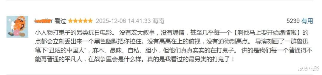 一则超过5000点赞的评价说:“真的是我看过的最另类的打鬼子!”