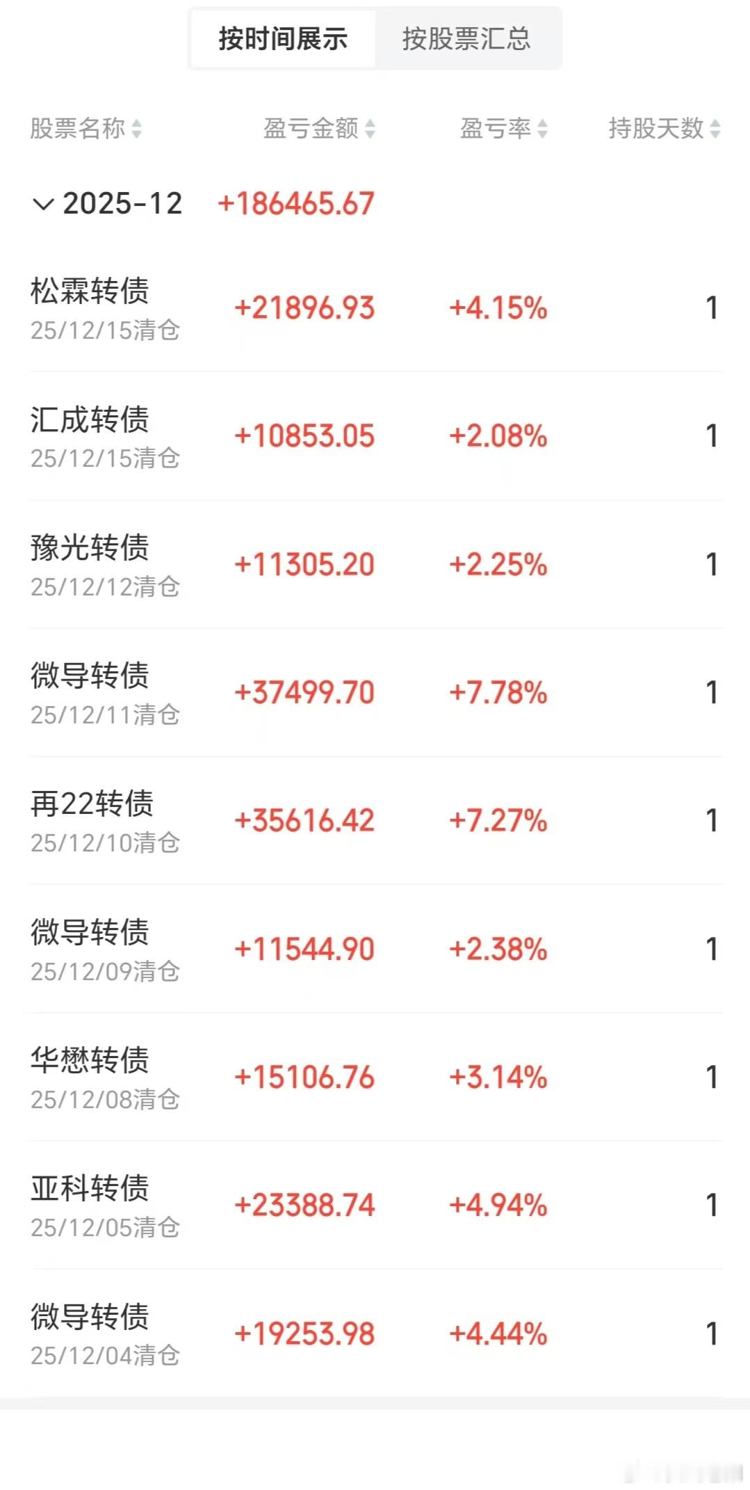 今天破例做了两笔,汇成主要是早盘太强。松霖属于计划内产物。目前八连阳,12月这个收益还是比较满意的可转债