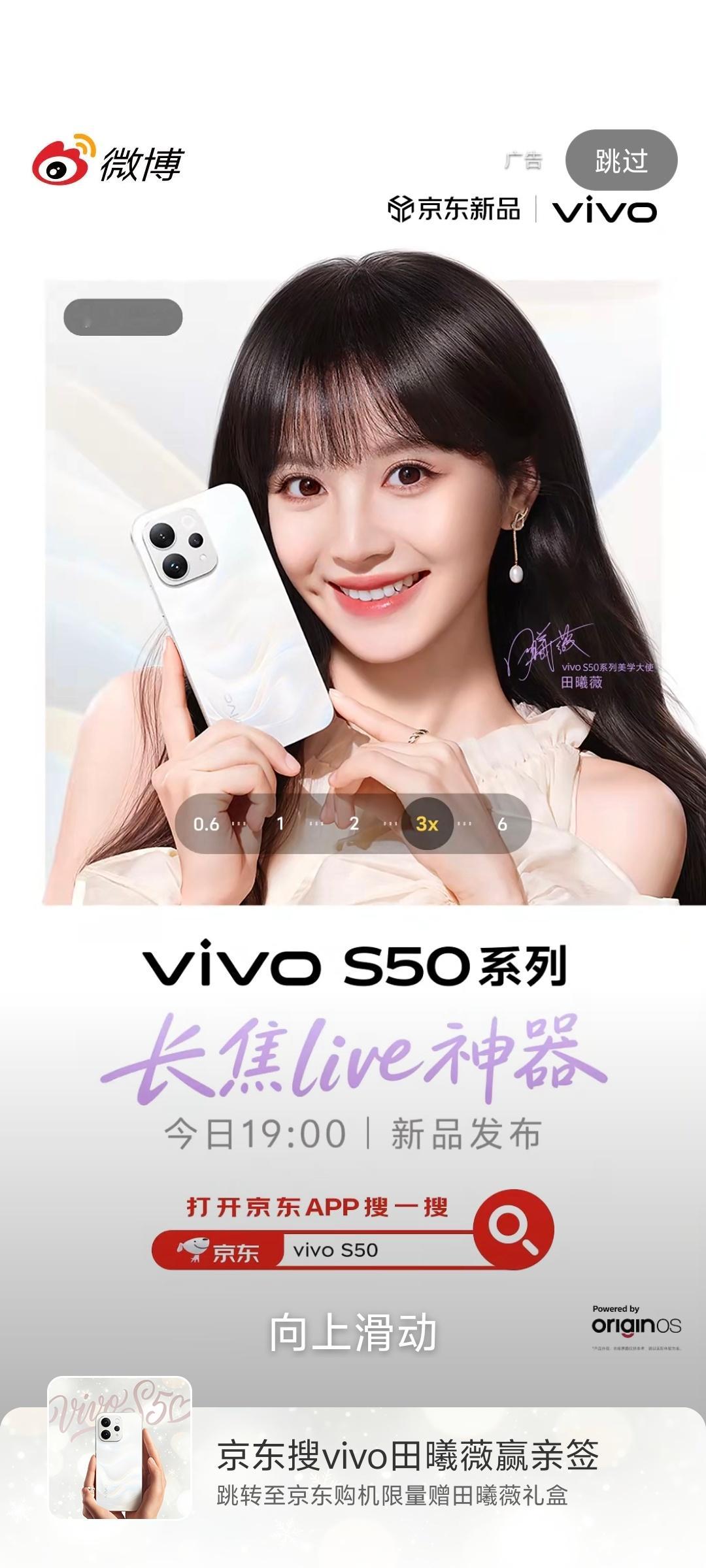 只能在微博上看田曦薇了羡慕今晚能去 vivo S50 发布会的人,可以亲眼看见田