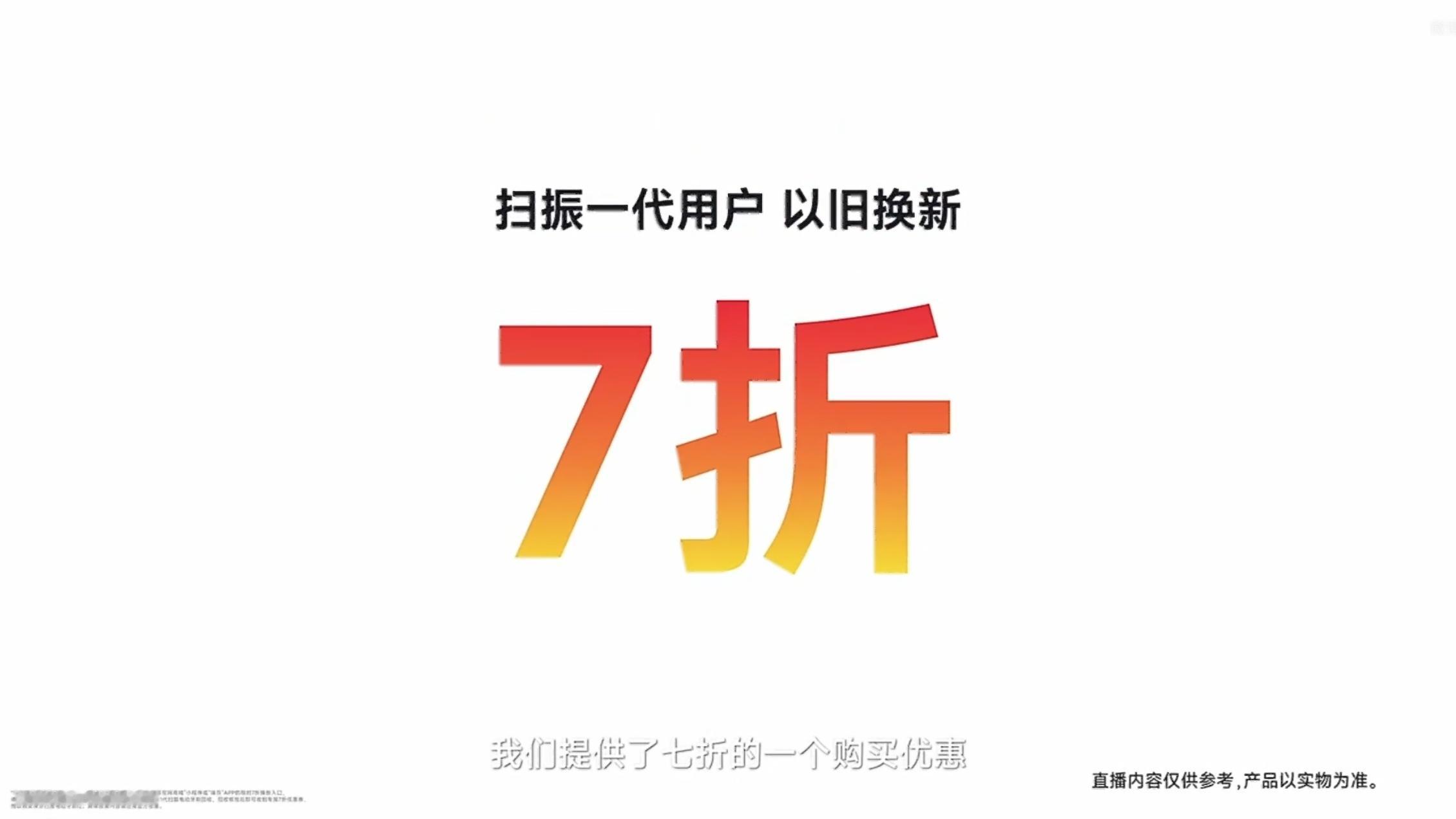徕芬对扫振一代用户的回馈政策:7 折以旧换新。叶总表示对 1 代用户非常惭愧,希望老用户再给 2 代一次机会。