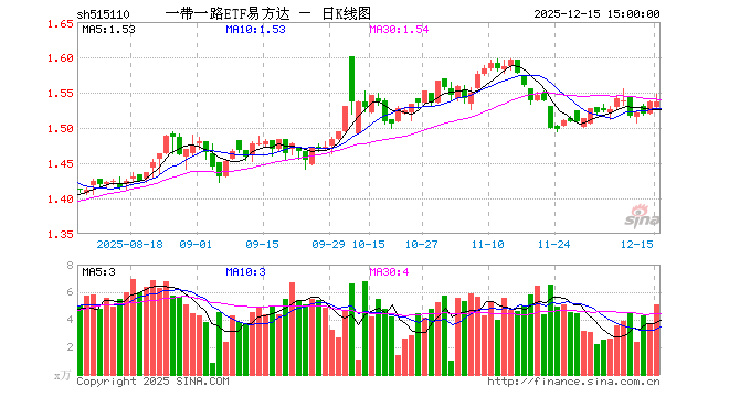 12月15日,一带一路ETF易方达(515110)涨0.00%,成交额789.61万元。当日份额增加100.00万份,最新份额为2.20亿份,近20个交易日份额增加100.00万份。最新资产净值计算值为3.39亿元。