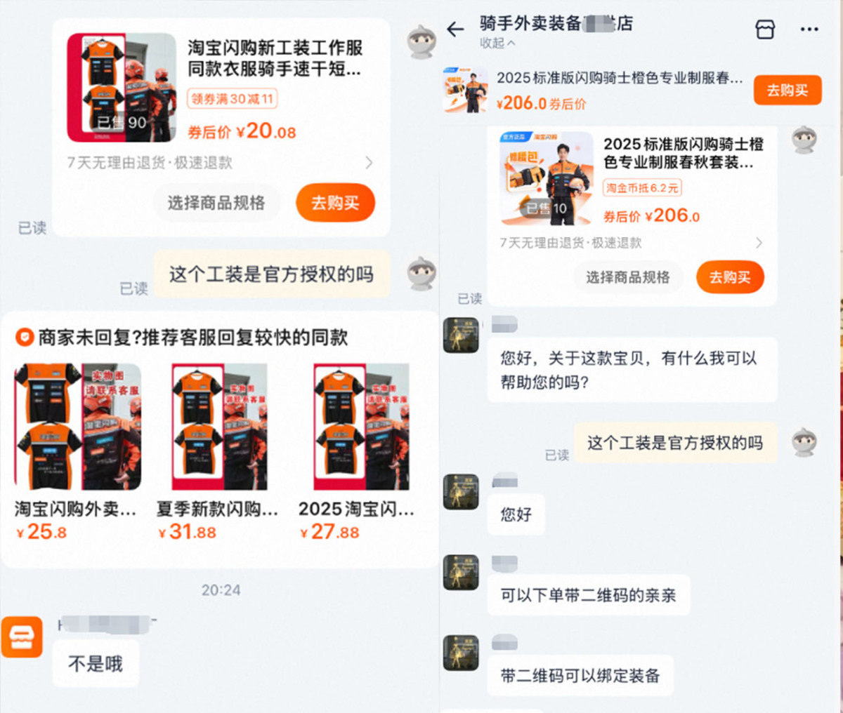记者还发现,在多个电商平台上,都能搜索到售卖淘宝闪购外卖服的网店。记者咨询多家网店客服获悉,大部分都未获得淘宝闪购官方授权。仅有少数店家声称“带二维码,可绑定装备”。12月16日,记者进一步向淘宝闪购官方客服求证,暂未获回复。