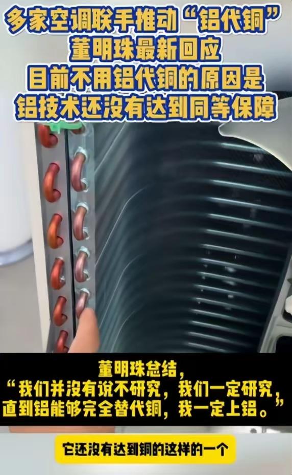 董明珠回应格力坚持不用铝代铜,空调用铜管贵又耐久,其他品牌改铝管省钱争议大,用户到底该信哪个? 最近网上吵得沸沸扬扬,格力董事长董明珠说他们家空调坚持用铜管,因为铝管还没达到铜的水平。但海尔、美的这些品牌已经在研究铝管空调,还一起签了协议不让互相黑对方。这事听起来简单,其实背后藏着不少门道。 空调做久了总会坏,关键要看怎么坏。铜管导热好,不容易烂,就算漏了还能补。但铝管便宜一半,导热差些,一烂基本没法修。董明珠说格力不换铝管,就是怕到时候客户找麻烦。不过现在铜价涨得吓人,每吨都快十万了,换铝能省不少钱,很多厂子都想试试。 国家也站队铝管。今年三月工信部发文件要推广铝代铜,说中国铜不够用还得进口,铝资源多应该多用。冰箱早几年就换了,现在90%都是铝管。但空调不一样,夏天制冷冬天制热,温度变化大,铝管扛不住长期折腾。日本大金公司倒是做了八成铝管空调,不过人家搞了几十年技术了。 消费者最头疼。有人租房想买便宜货,铝管刚好。有买房装修的想选耐用的,还是铜管靠谱。但铝管空调刚出来,用个三五年会不会出问题没人知道。有专家说低端机可以用铝管,高端机还是铜管实在。可厂家不会明说用了什么材料,光看价格和广告根本搞不清。 生产线上换铝管也有麻烦。机器要改,工人得学新技术,售后还要培训。铝管焊接特别难,很多维修点不敢接。万一铝管空调坏了只能换新,成本反而高。格力现在不松口,可能是担心万一出问题被骂割韭菜。 标准还不统一。上个月刚出台了个铝管生产线的团体标准,国家标准要明年才修订。厂家们先签了个协议互相帮忙,就是怕打价格战时有人说谎。但格力没参加,他们觉得标准还不够完善。现在空调界分成两派,一派想省钱换铝,一派守着铜管不放。 总之买空调得看自己情况。住短出租的随便挑便宜的,自家住得好歹看看材料说明。这事儿估计要等铝管技术再成熟几年才能清楚,现在只能各厂继续争,客户自己选。
